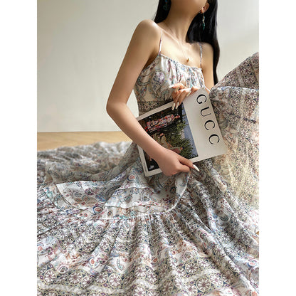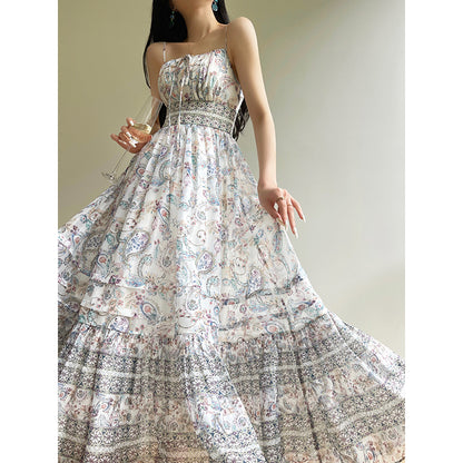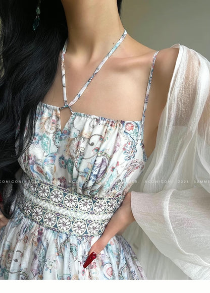 Aconiconi Elegant Retro floral Bohemain Long vacation Dress- Eden Floating Shadow