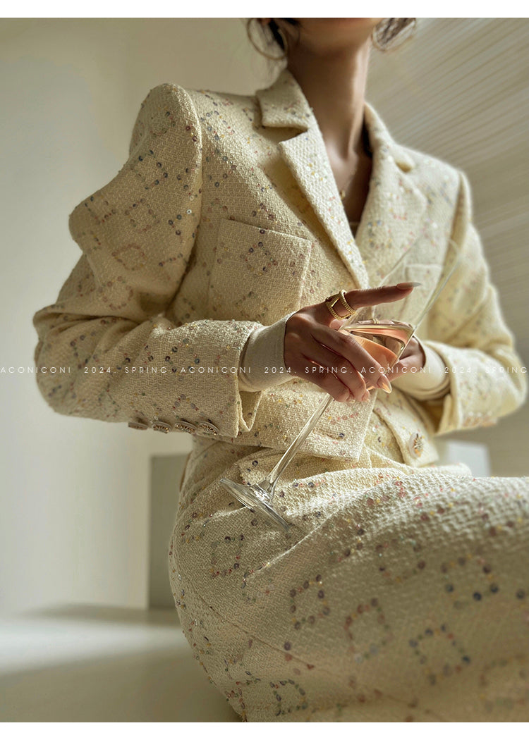Aconiconi Elegant Suit Slit tweed Skirt - Champs Elysees Holiday