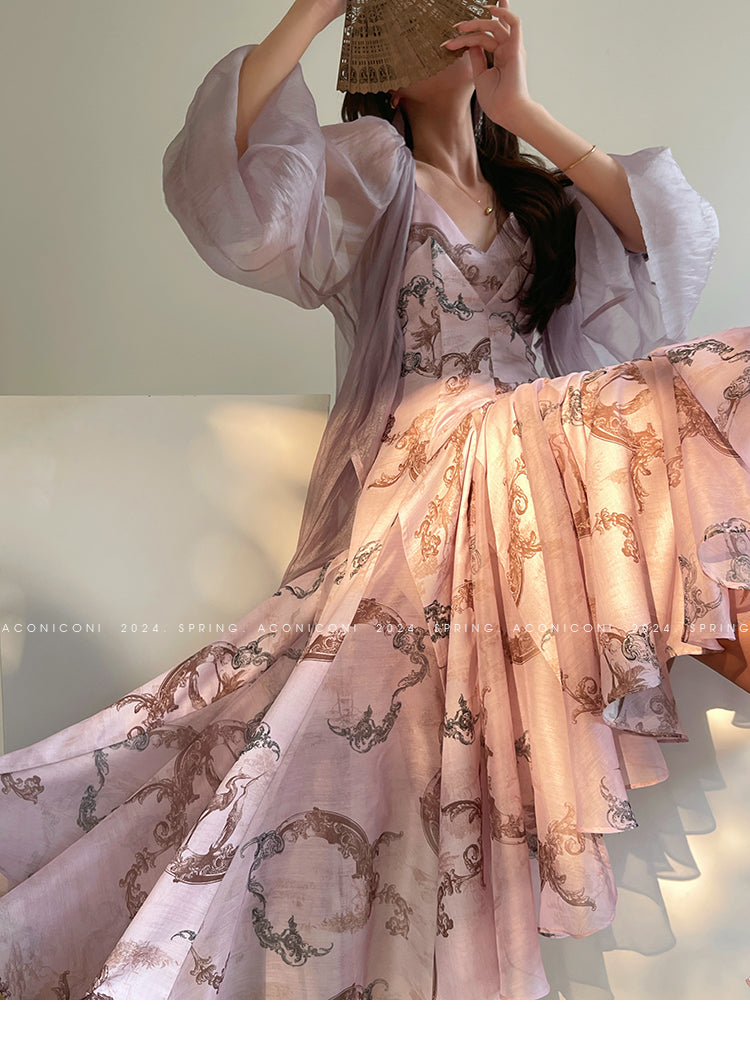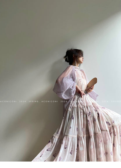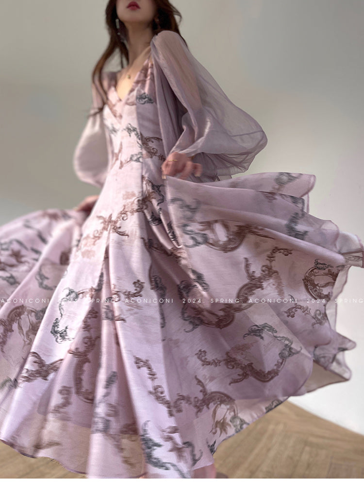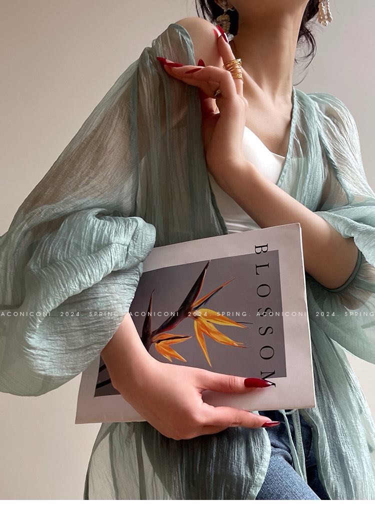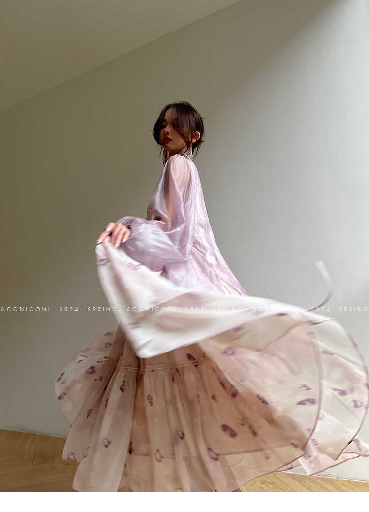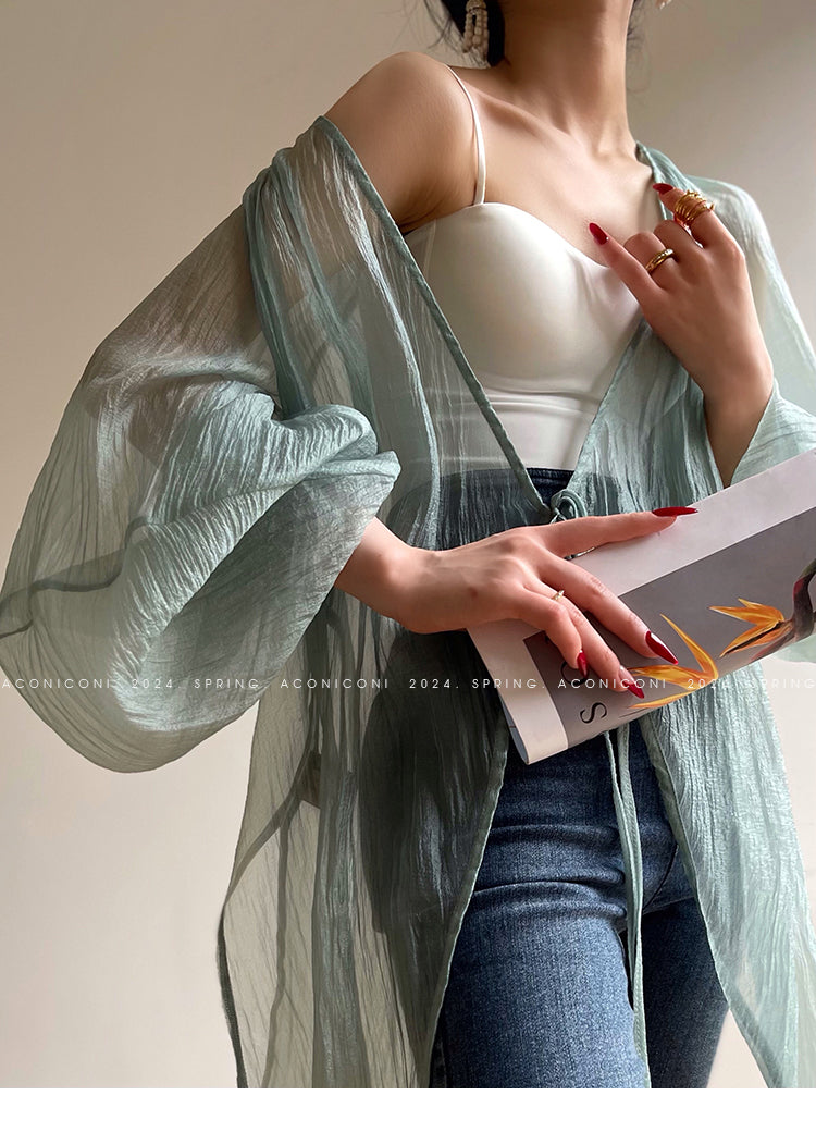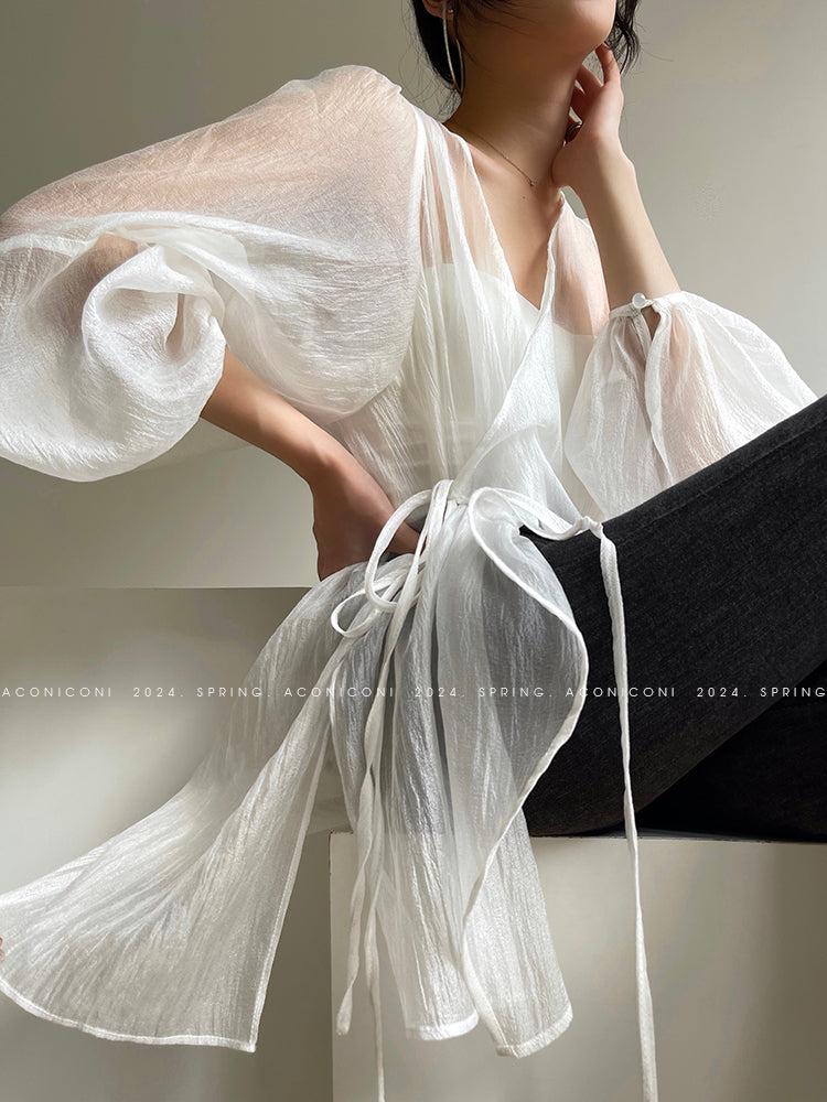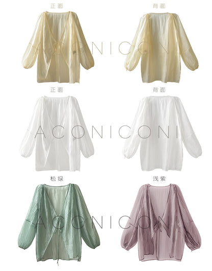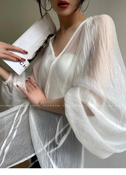 Aconiconi Elegant V-Neck Long Sleeve Loose Lace Chic Shirt-Light Dance Whisper