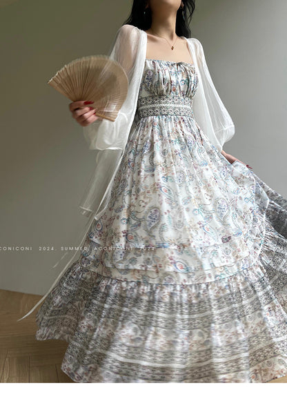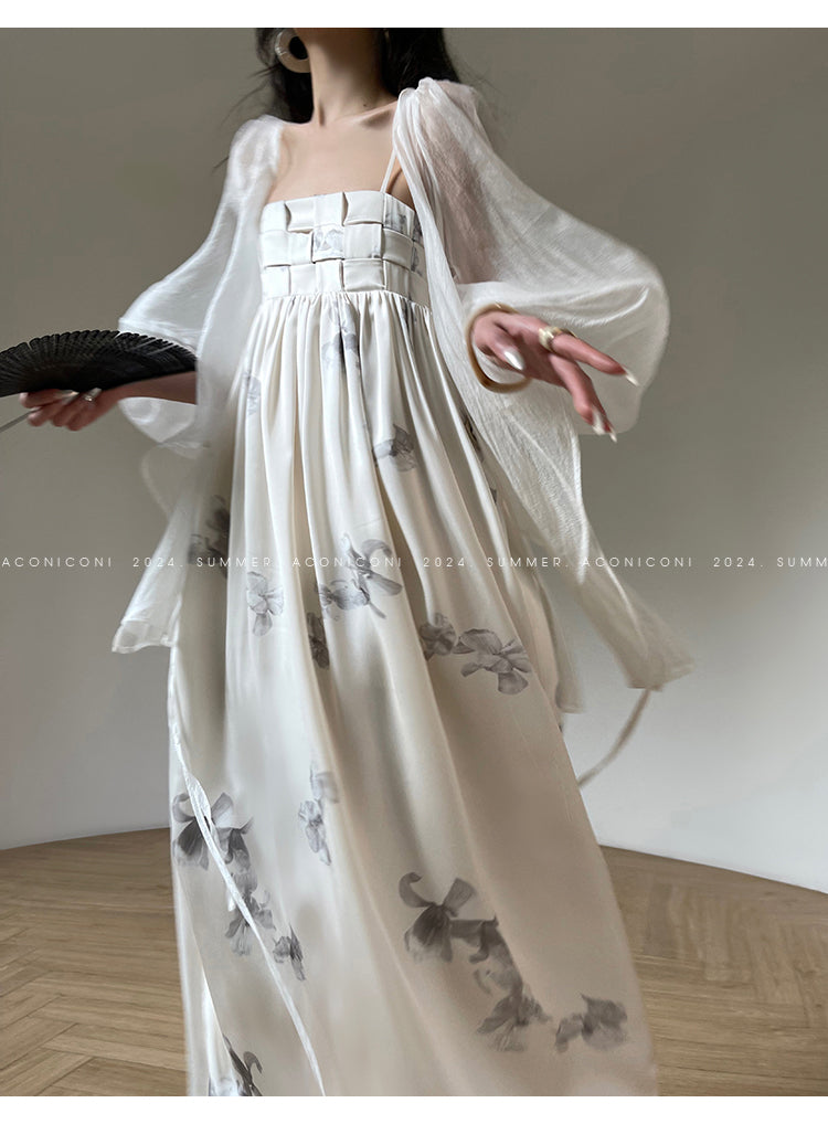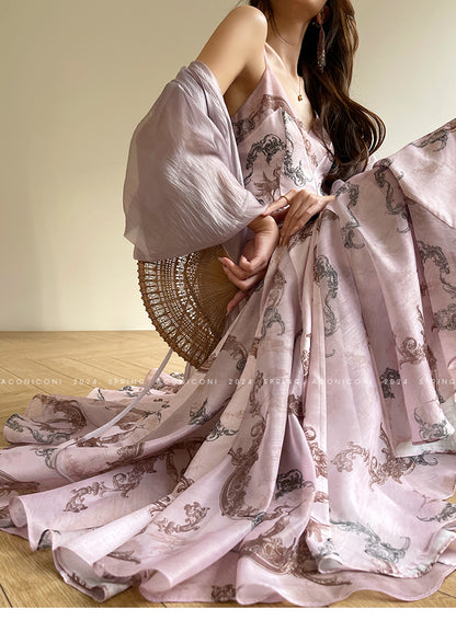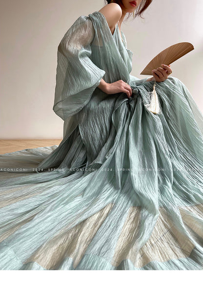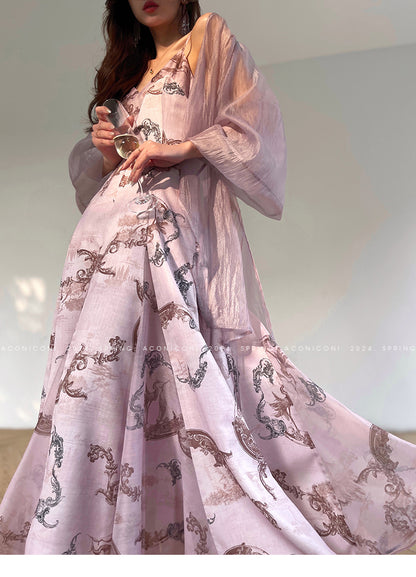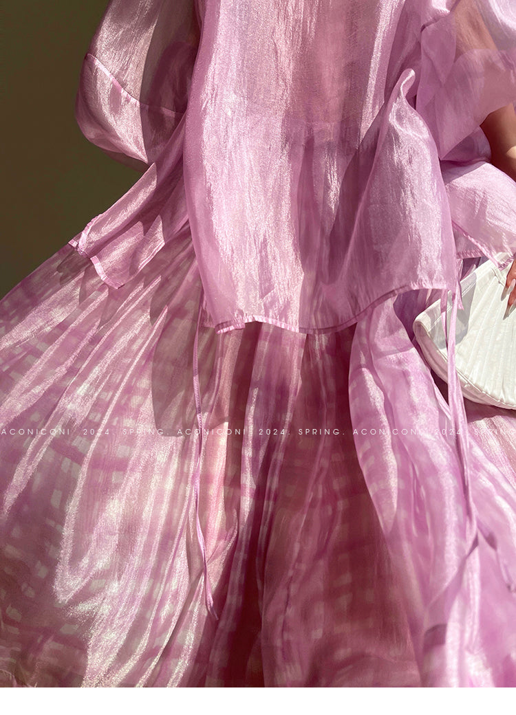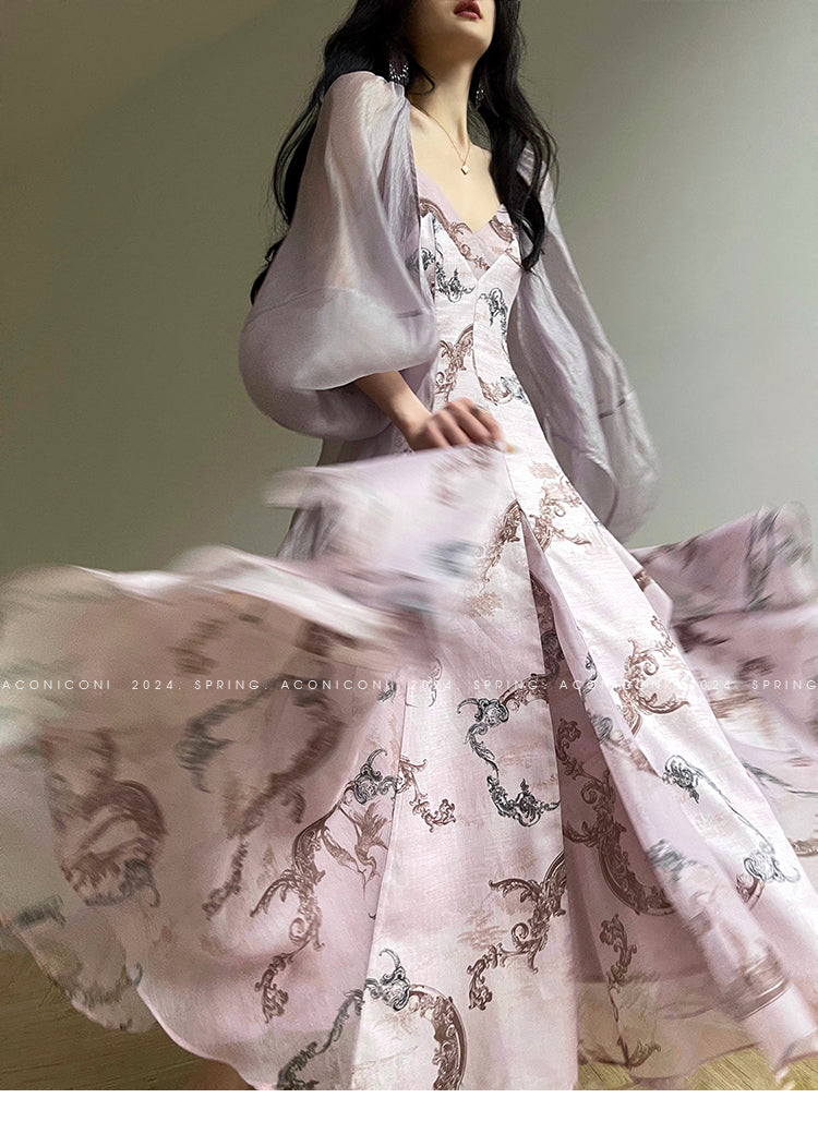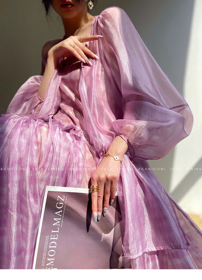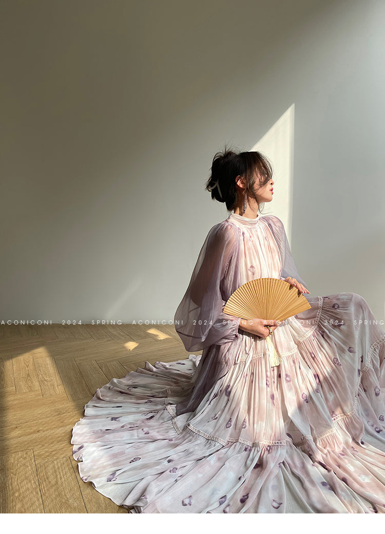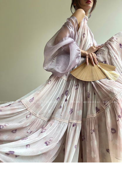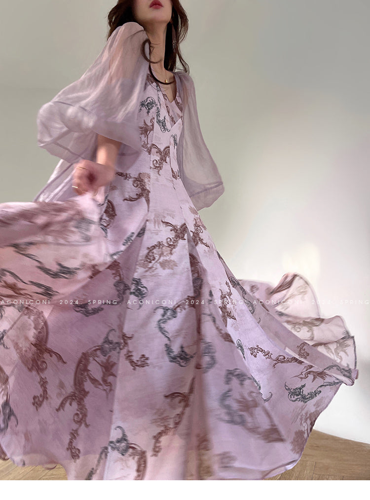 Aconiconi Elegant V-Neck Long Sleeve Loose Lace Chic Shirt-Light Dance Whisper