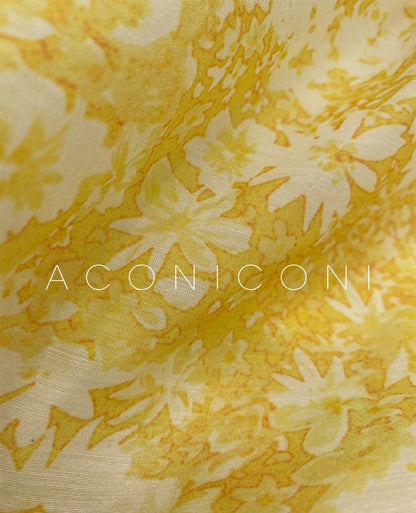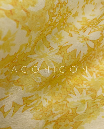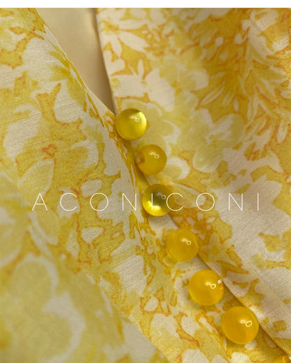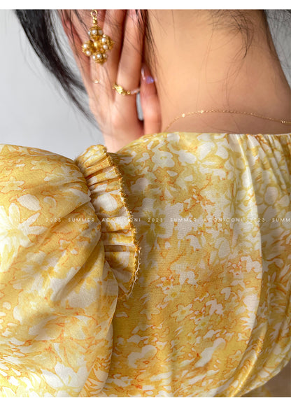 Aconiconi Elegant Yellow V-NeckPuff Sleeve Vacation Dress- Manshan