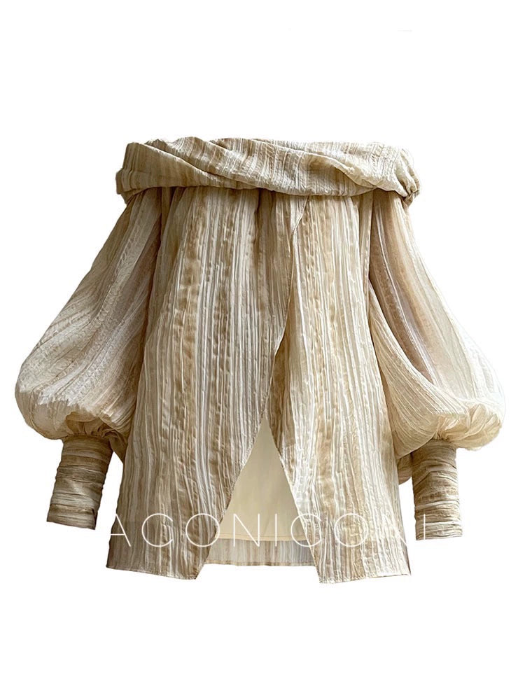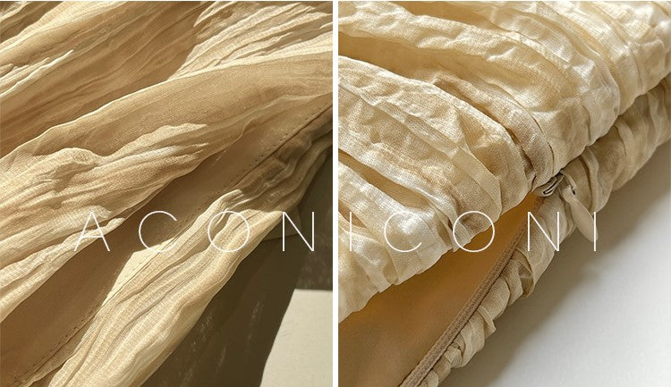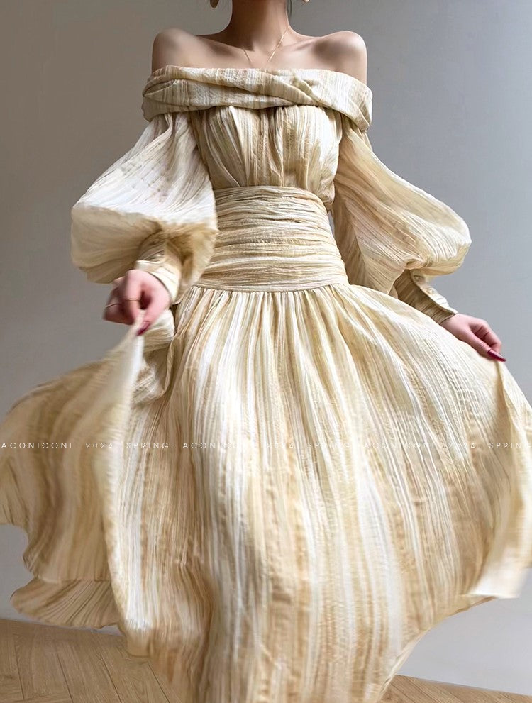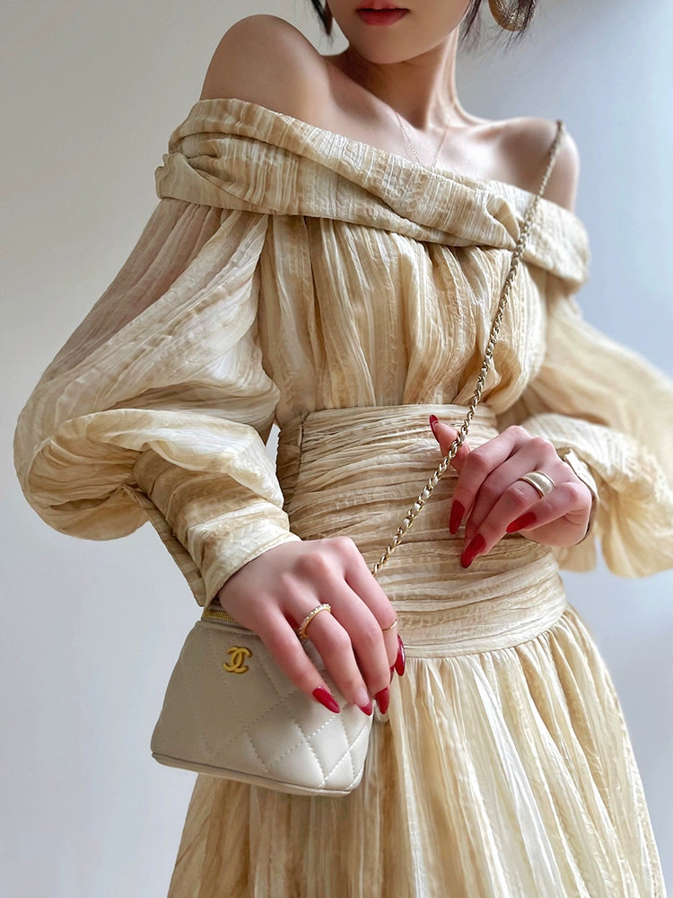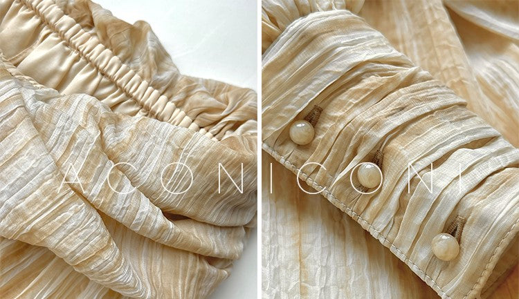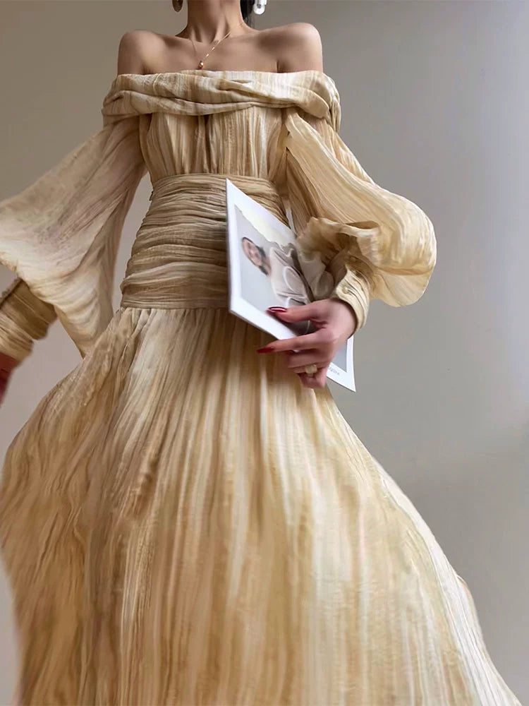 Aconiconi Elegant Wave Pattern Long Sleeve Loose Wedding Guest Dress- Dune