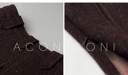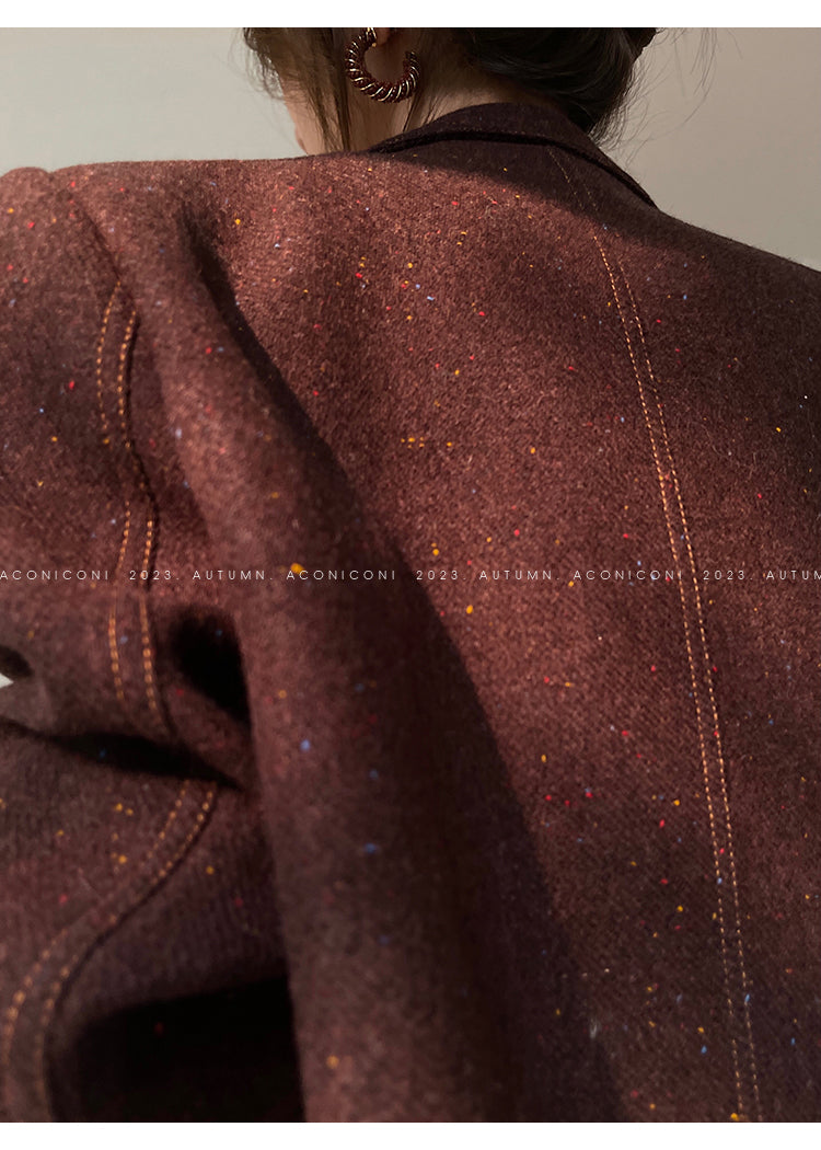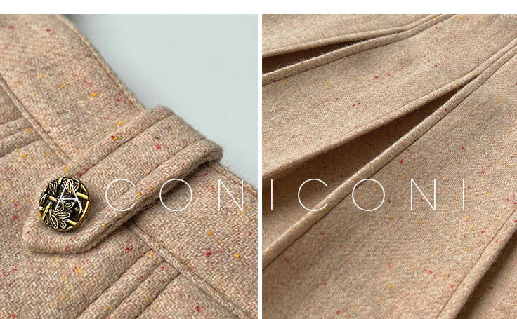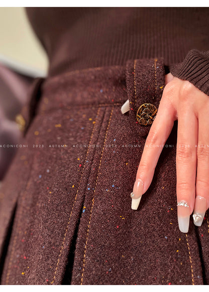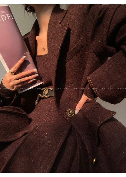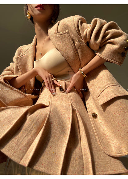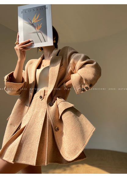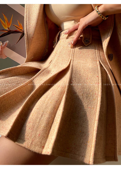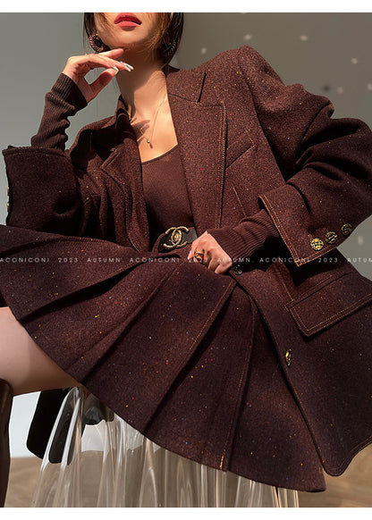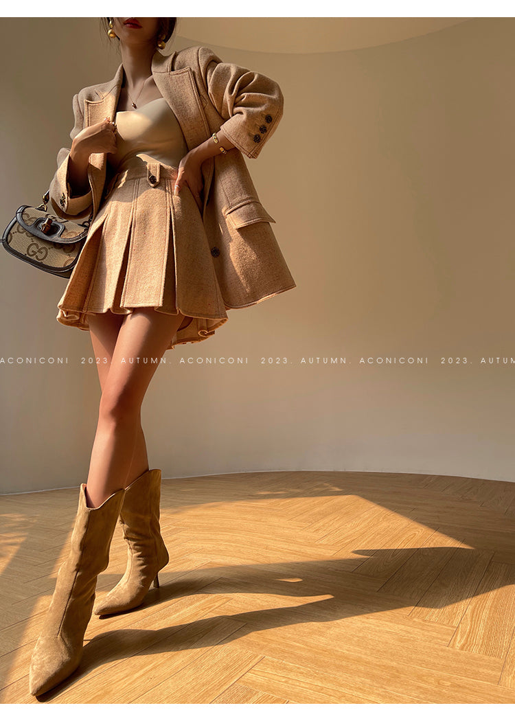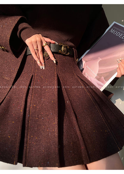 Aconiconi Girl Full wool French long sleeve Blazer pleated skirt - Maillard