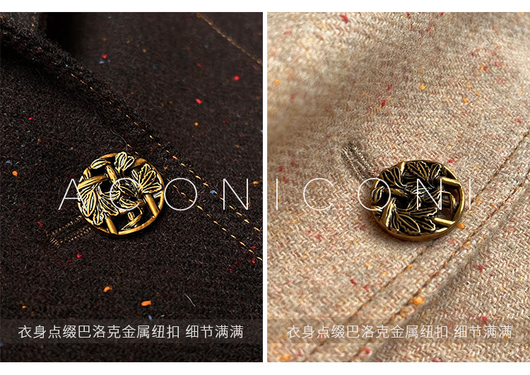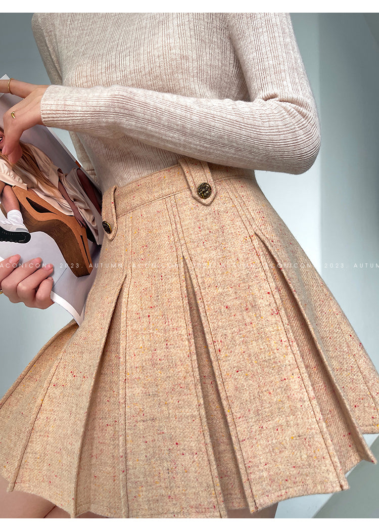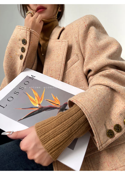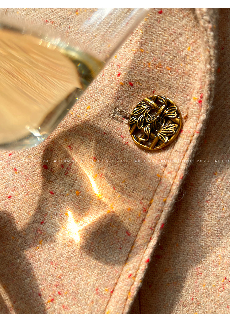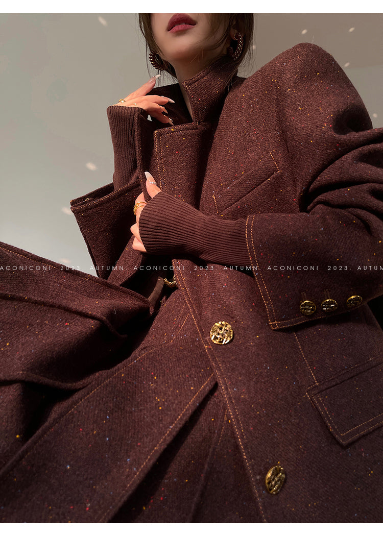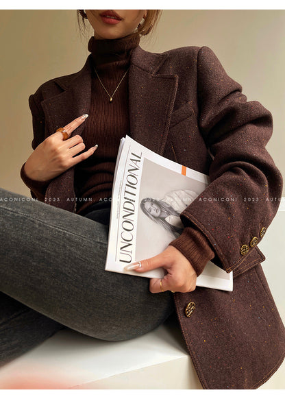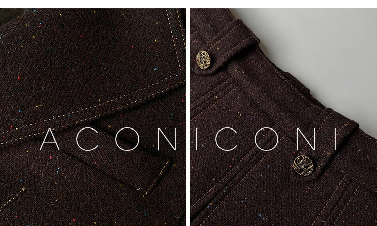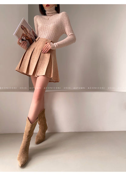 Aconiconi Girl Full wool French long sleeve Blazer pleated skirt - Maillard