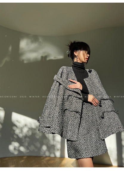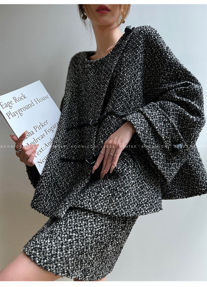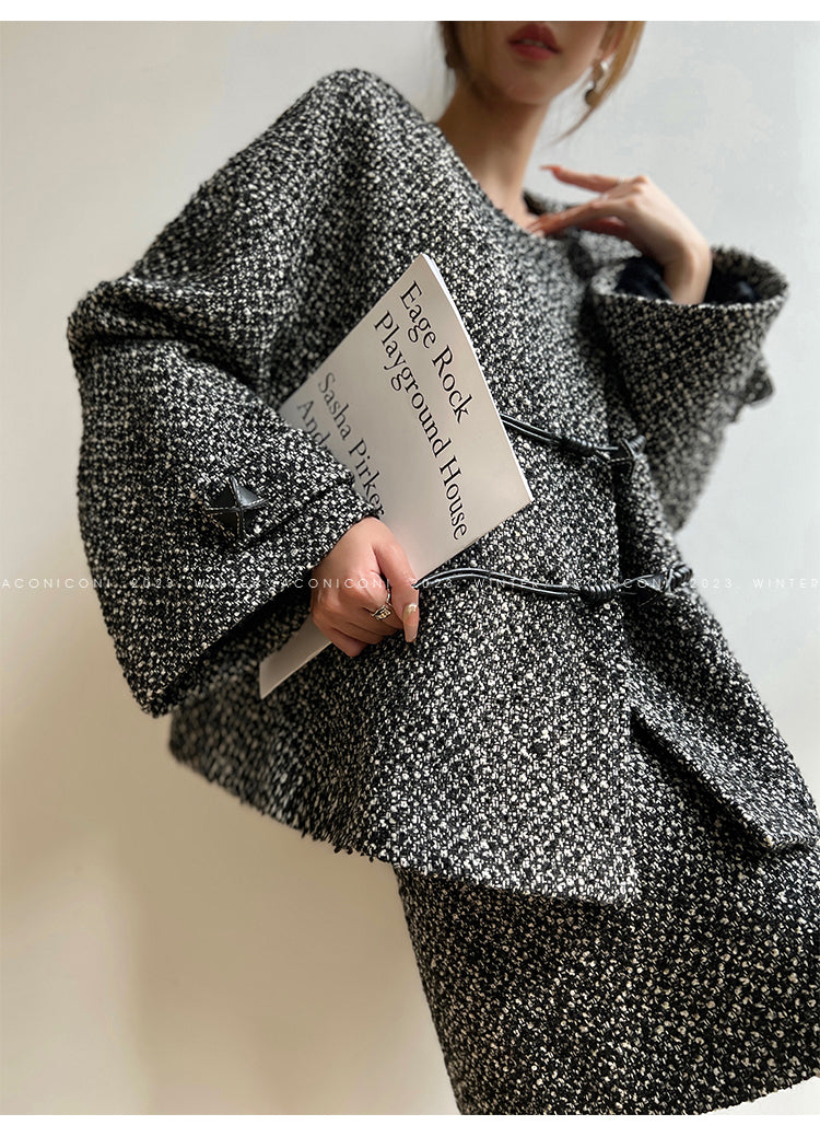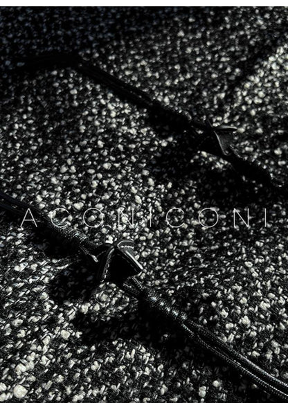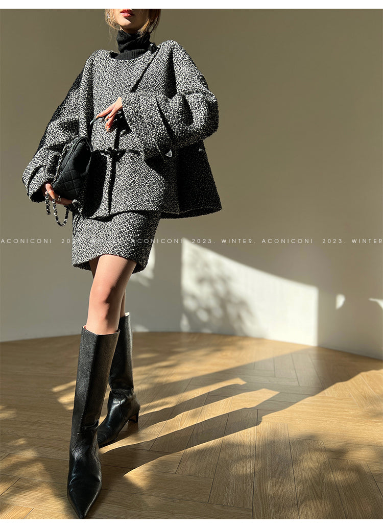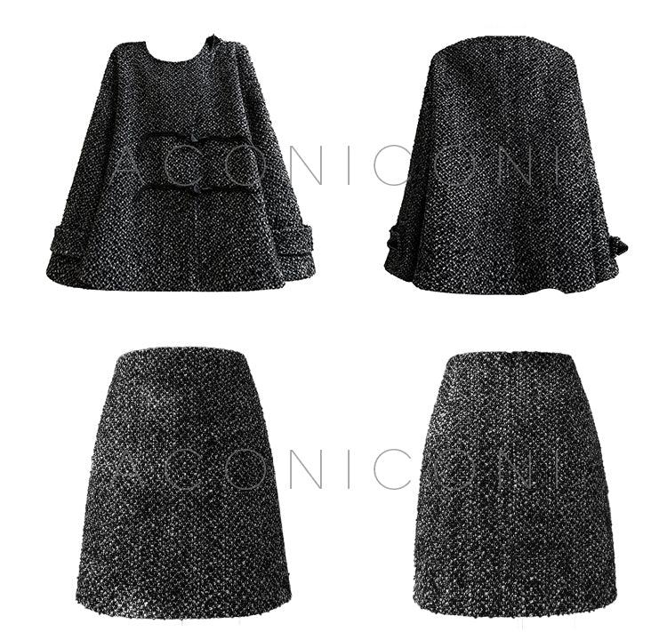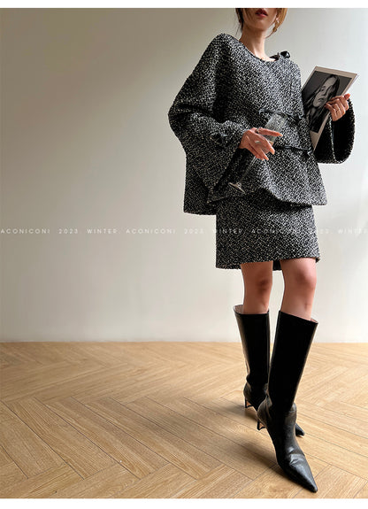 Aconiconi High End Dark Crew Neck Bell Sleeve Straight Jacket Skirt- Dark Fragrance