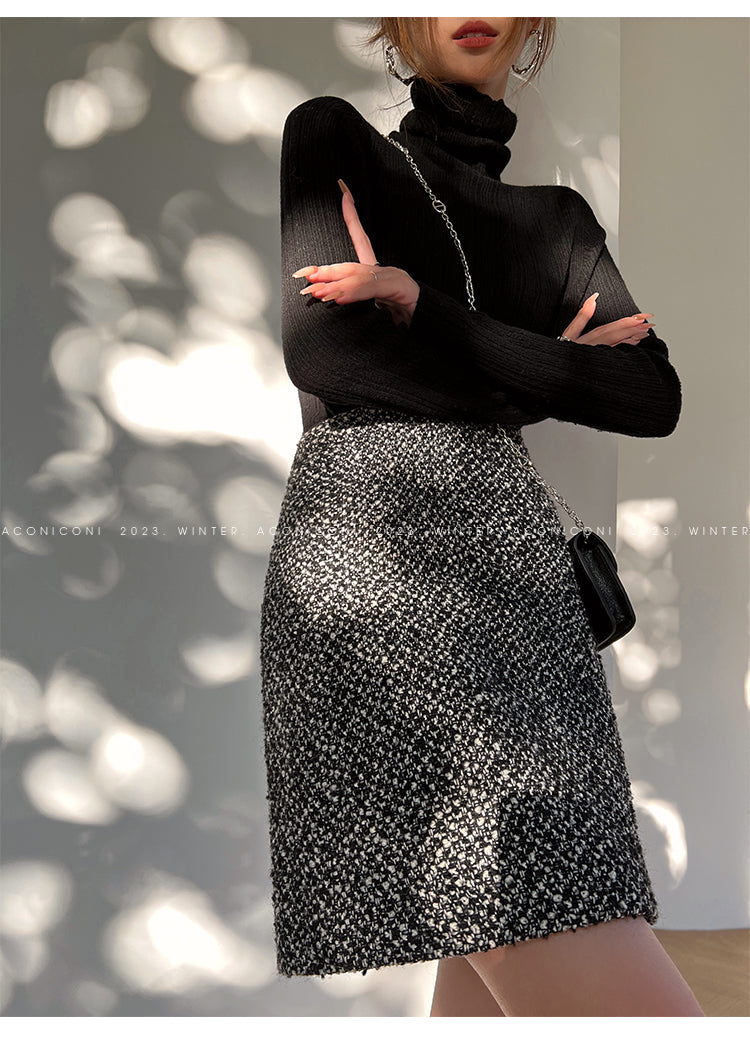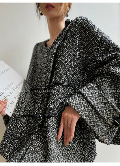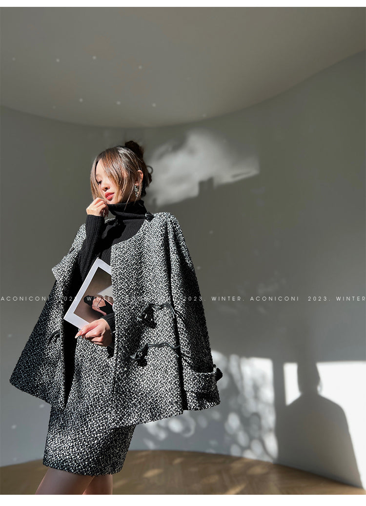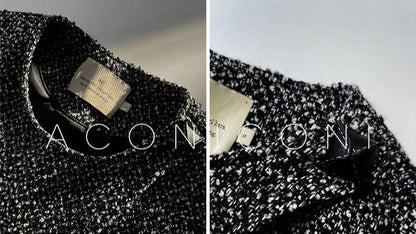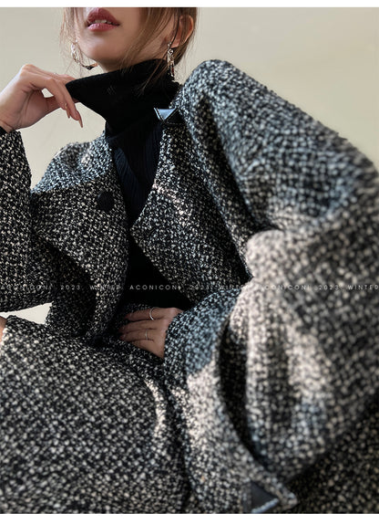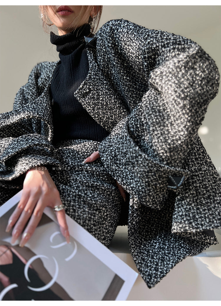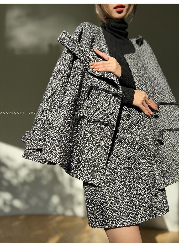 Aconiconi High End Dark Crew Neck Bell Sleeve Straight Jacket Skirt- Dark Fragrance