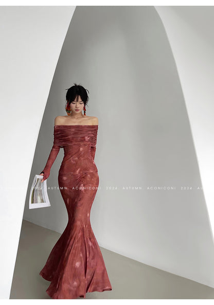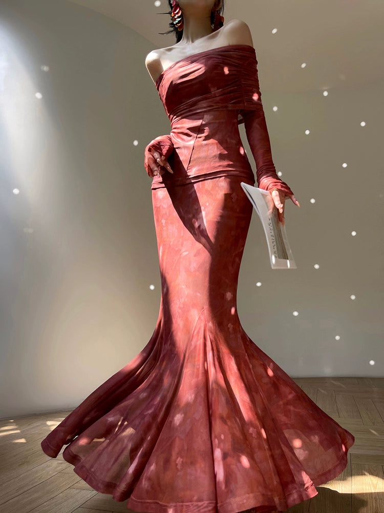 Aconiconi Luxury maxi fish Skirt Off shoulder top - Amber Sweet Tea