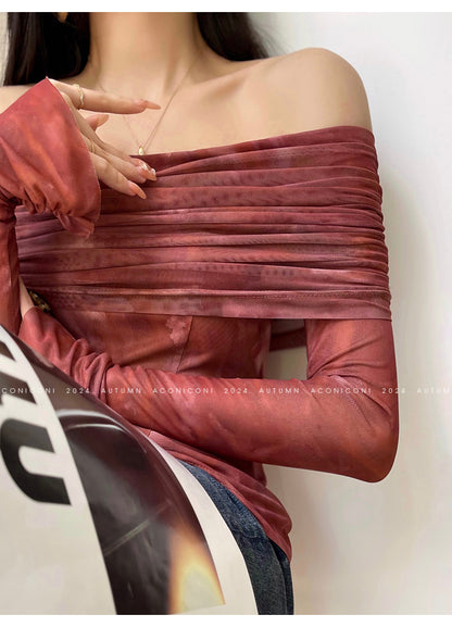 Elevate your style with the Aconiconi Luxury Amber Dress. This slim fit mesh dress features an alluring off-shoulder design and long sleeves, exuding a sophisticated and  exclusive vibe. Its elegant silhouette and sexy cut will make you the center of attention at any banquet or special event.