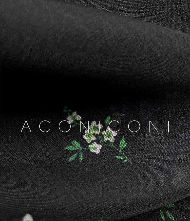 Indulge in the luxurious and tasteful Aconiconi Cocktail Dress. Its retro floral print and slim waistline exude elegance and sophistication, while the V-neck adds a touch of sexiness. Perfect for a night out or a special occasion, this dress will make you feel like a Dark Fragrance painting come to life.
