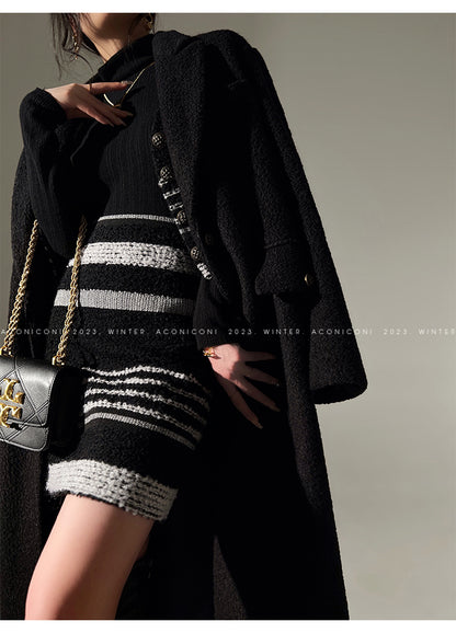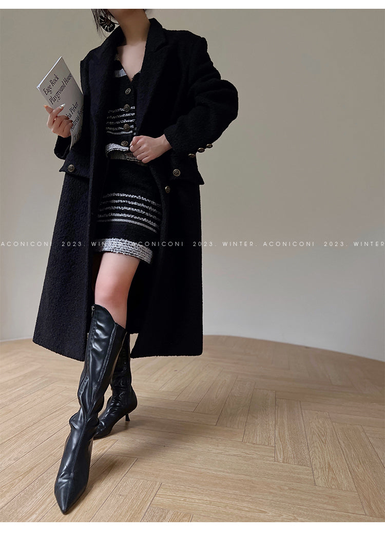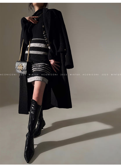 Indulge in the opulence and refinement of our Aconiconi Luxury Black Suit Collar Long Sleeve Long Straight Winter Coat- Joyce. Exuding elegance and boldness, this coat will elevate your style and make a statement. Fall in love with its timeless design and luxurious feel.