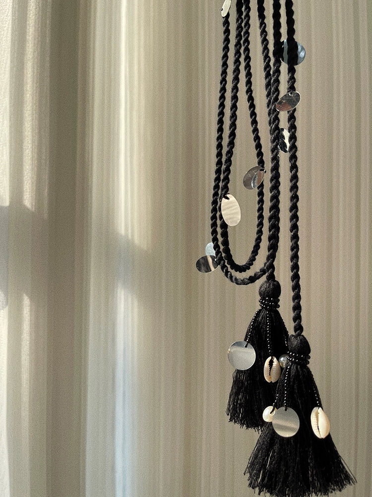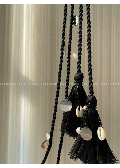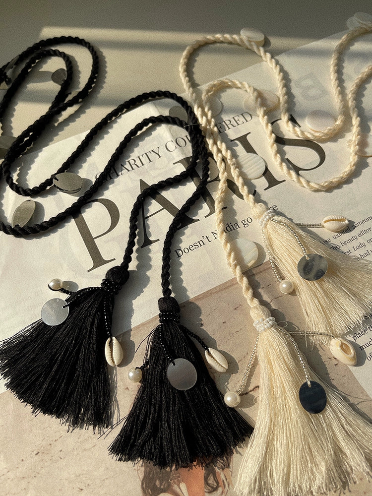 Complete your luxurious look with the Aconiconi Luxury Braided Tassel Belt. This versatile and sophisticated waist rope adds a touch of elegance to any outfit. The universal design allows for easy styling, while the braided tassel, sequins, and pearl details add a bohemian flair. Elevate your fashion game with Watang. The black and white tassel belt is fashionable and versatile, adding a touch of exquisiteness to outfits