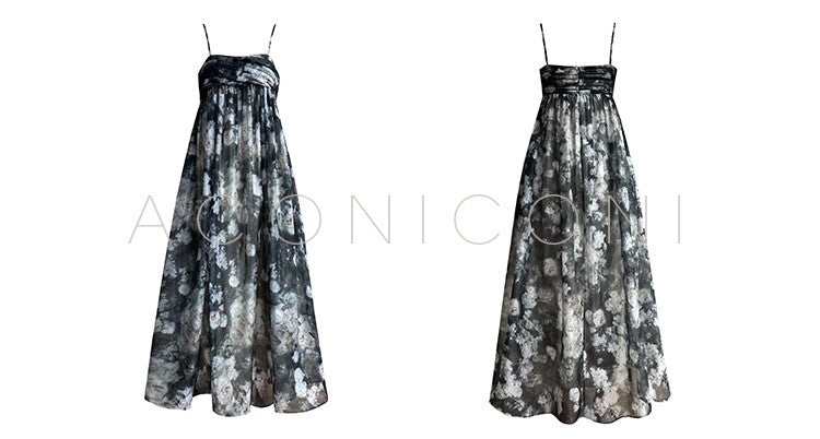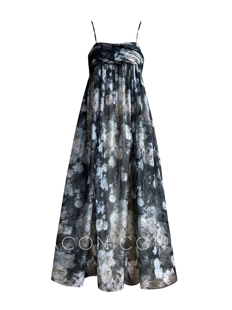 Indulge in luxury with the Aconiconi Francine dress. This Chinese style ink floral print dress is both sexy and elegant, making it the perfect addition to your summer wardrobe. With its loose fit and delicate suspender straps, you'll feel effortlessly chic and exclusive in this one-of-a-kind piece.