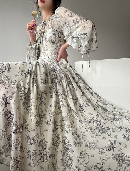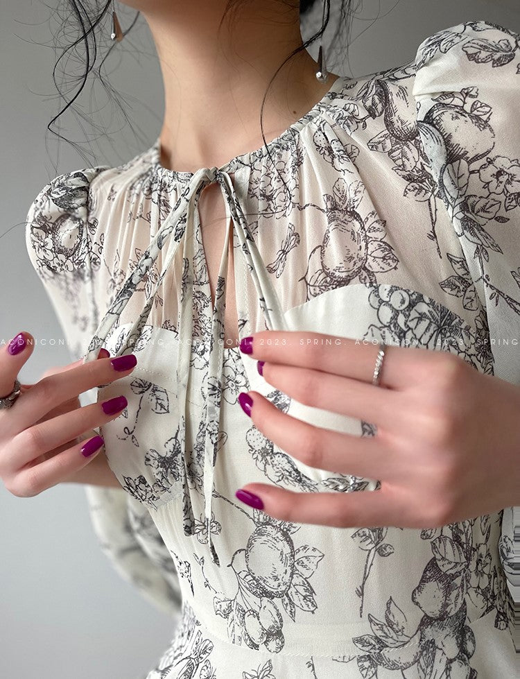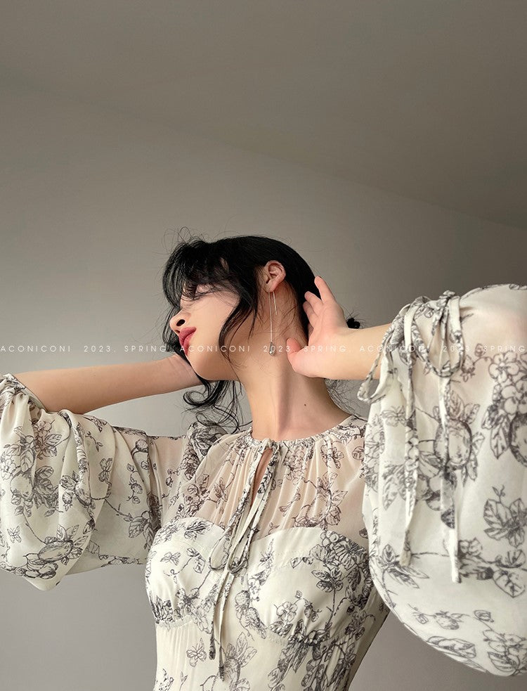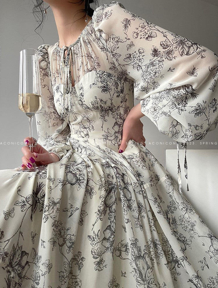 Aconiconi Luxury Crew Neck Long Sleeve Dress- Dongli