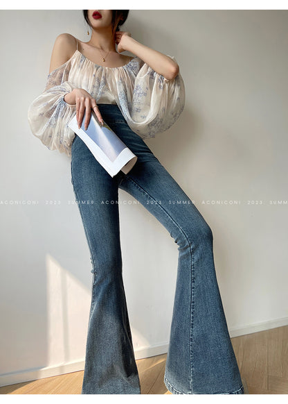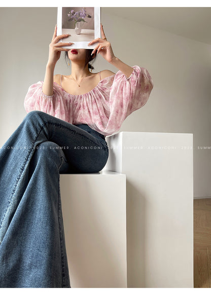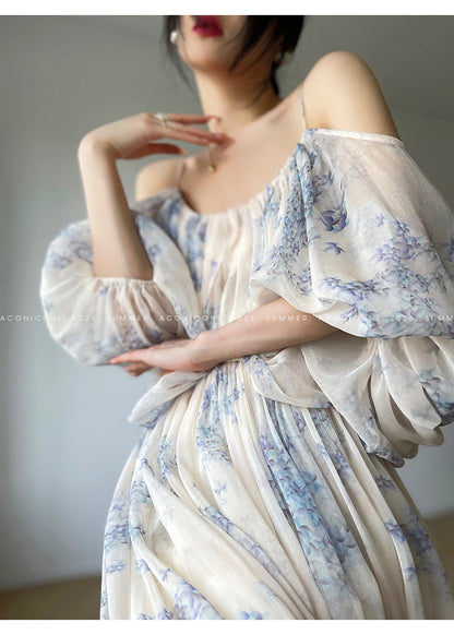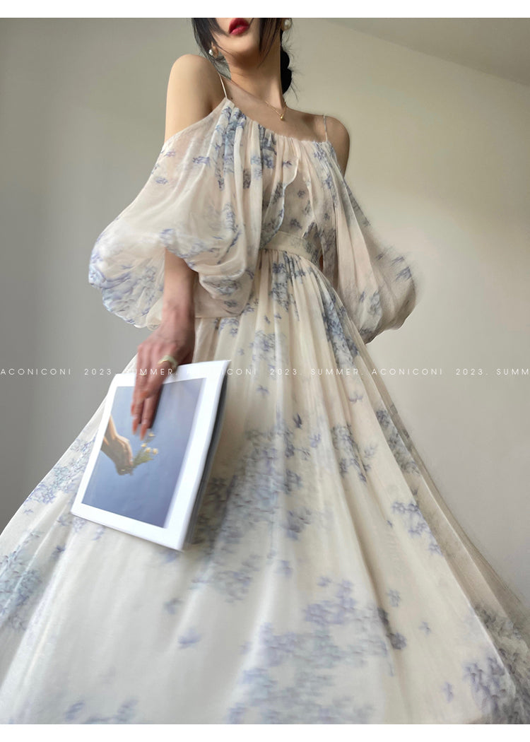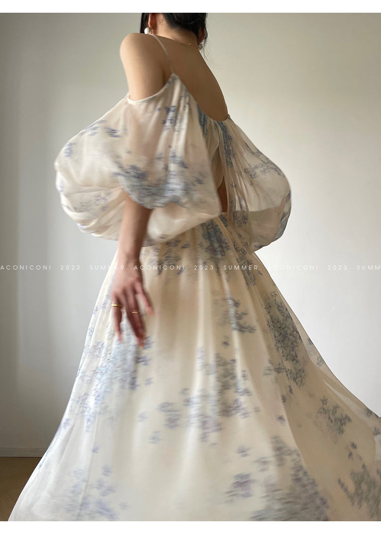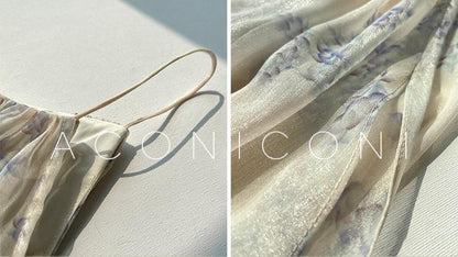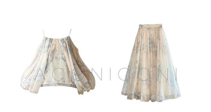 Aconiconi Luxury Floral Strapless Off Shoulder Cowl Top Long Skirt - Flower Fairy