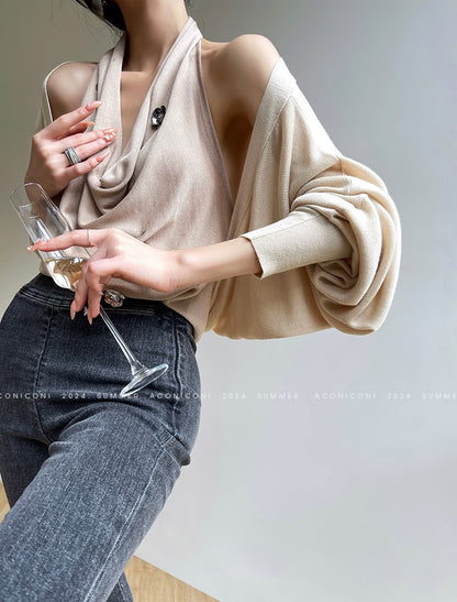 Indulge in luxury with our Aconiconi Deep Cowl Halter Neck Top, featuring shimmering sequin flowers that evoke a dream of flowing light. Designed for the elegant and seductive, this sleeveless top is perfect for a sexy date night or sultry evening out. Elevate your style with sophistication and exclusivity.