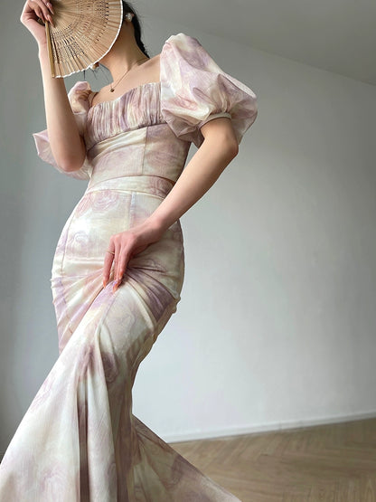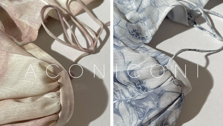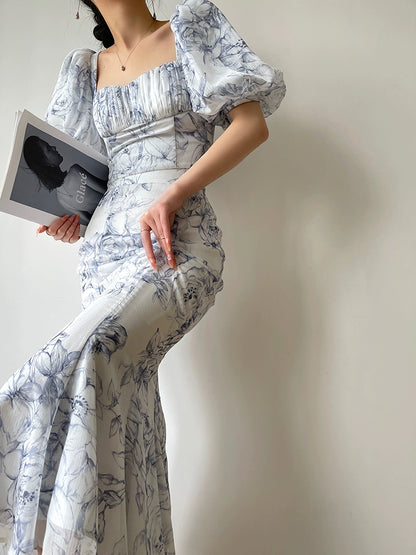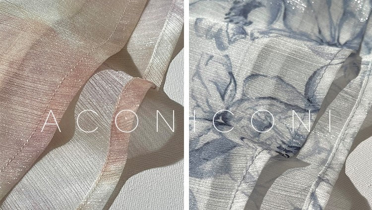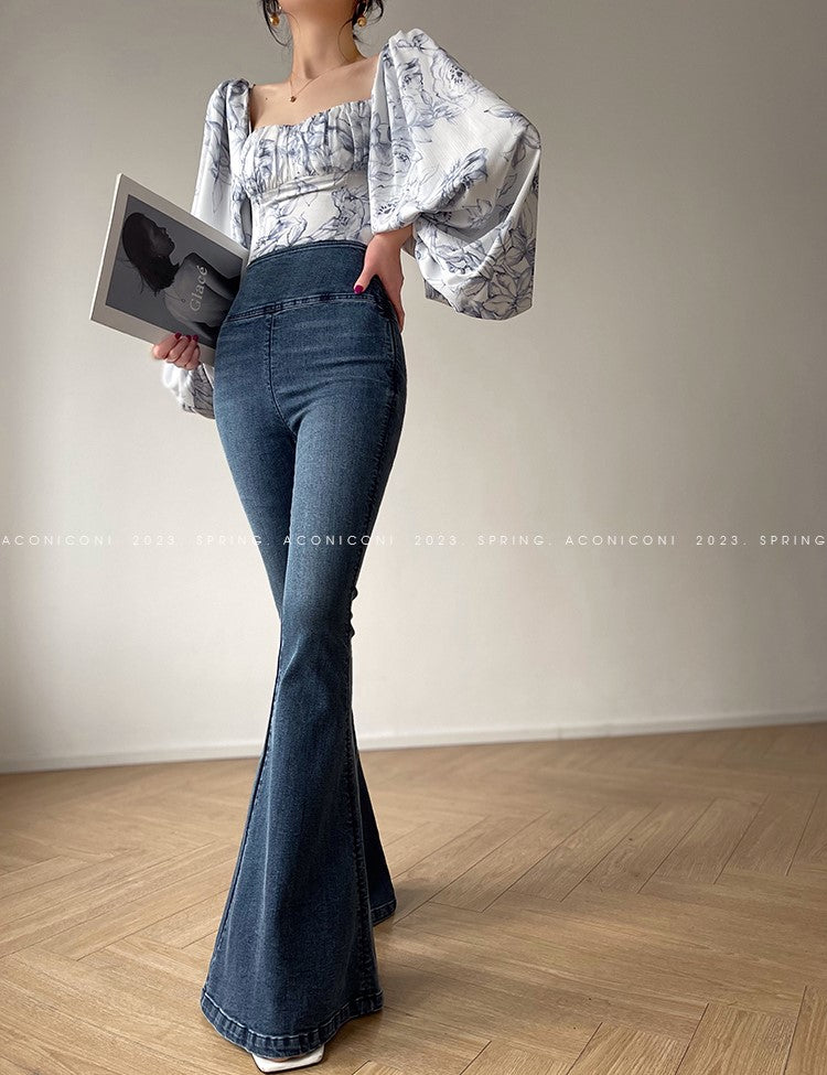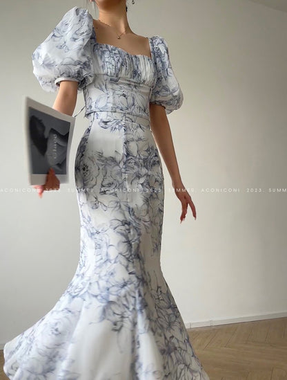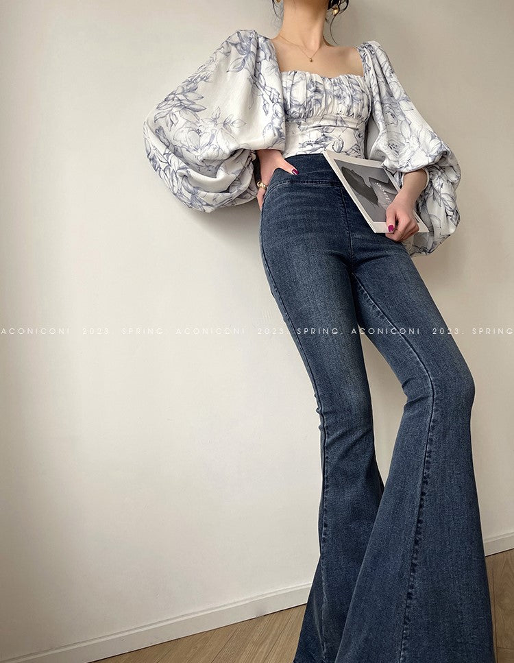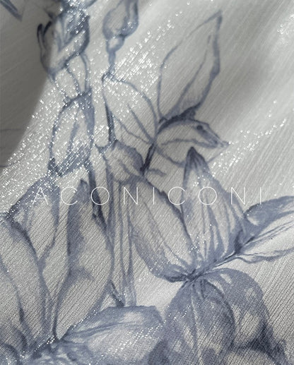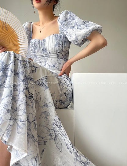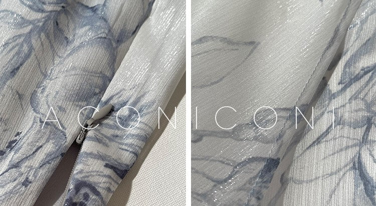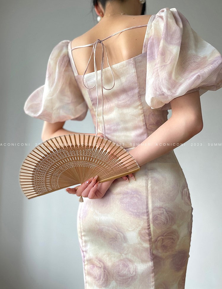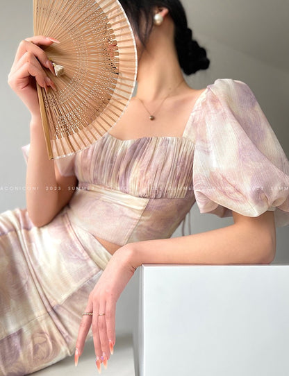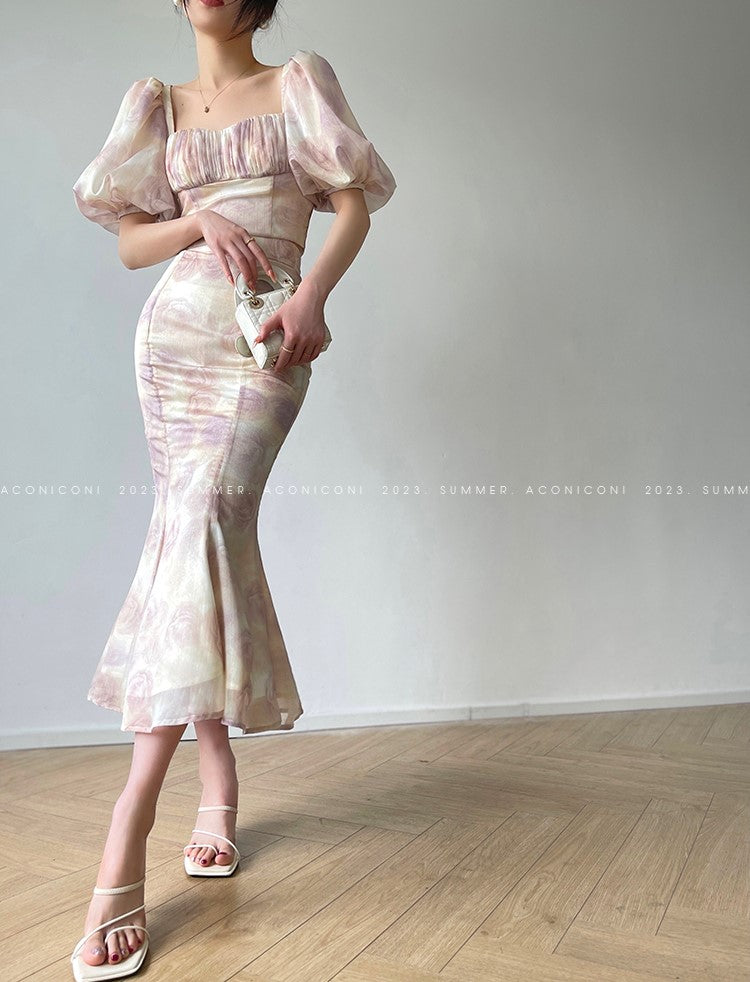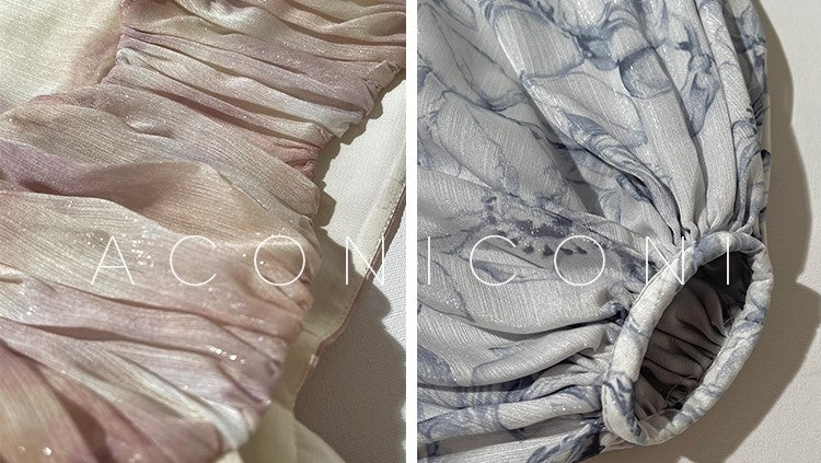 Aconiconi Luxury Square Neck Lantern Sleeve Top/ long Skirt- Angelica dahurica frost