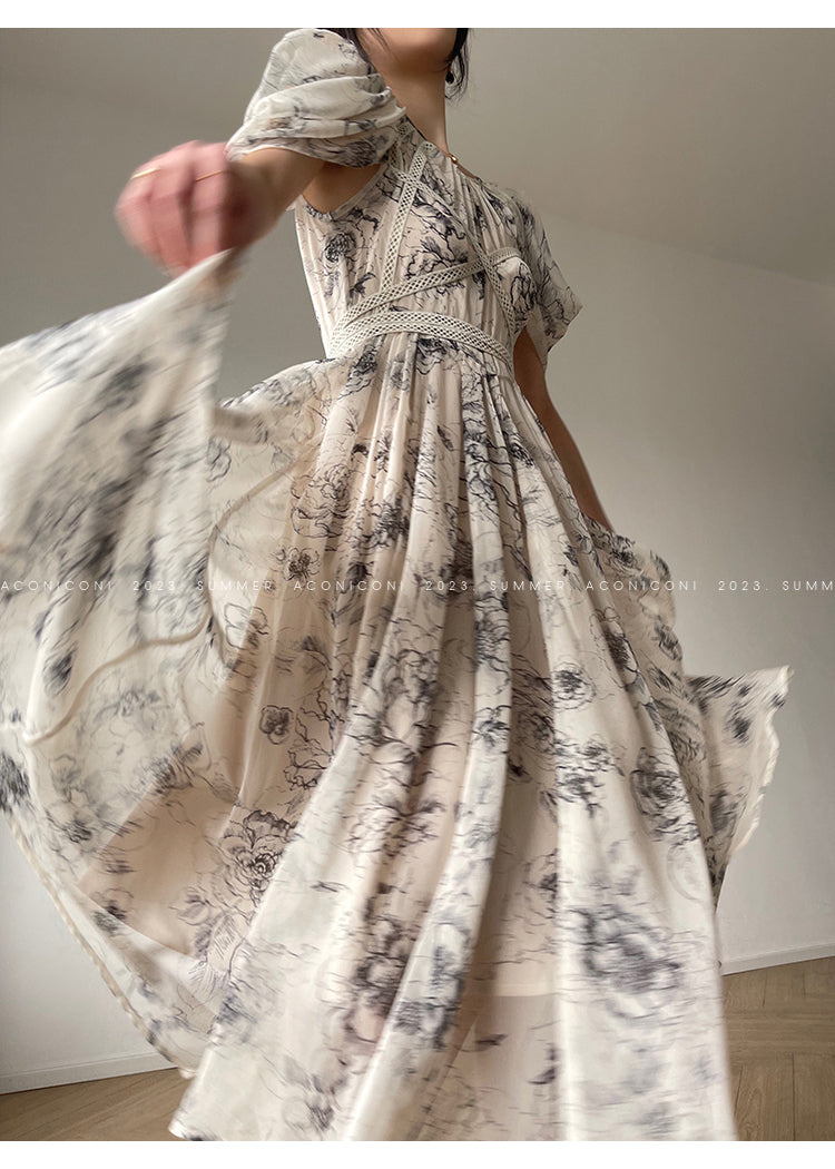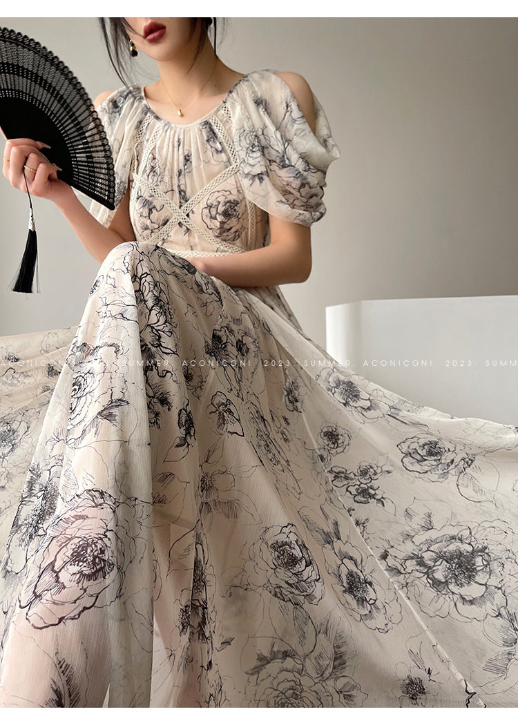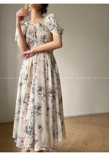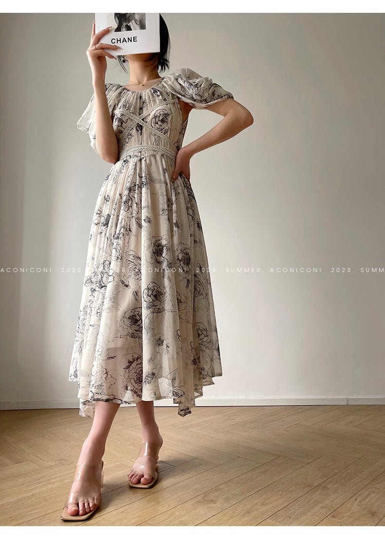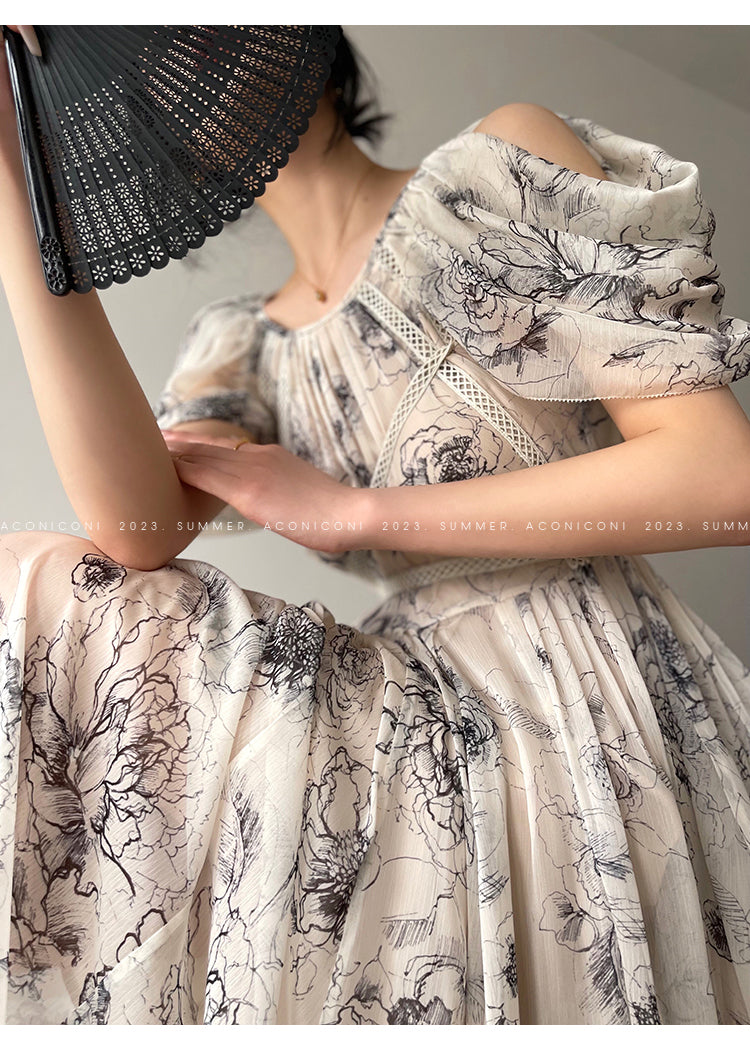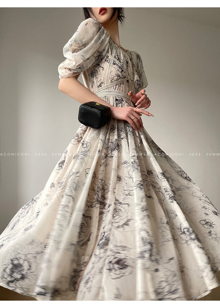 Indulge in the elegance and sophistication of our Aconiconi Luxury Rose Print Dress. With short lantern sleeves and a high waist, this long summer dress exudes luxury. Perfect for any occasion, this dress will make you feel sophisticated and exclusive.