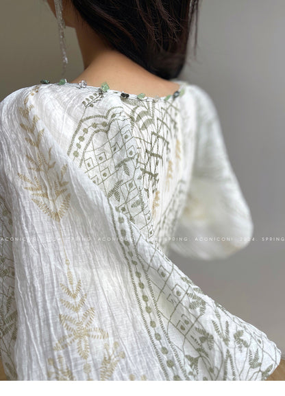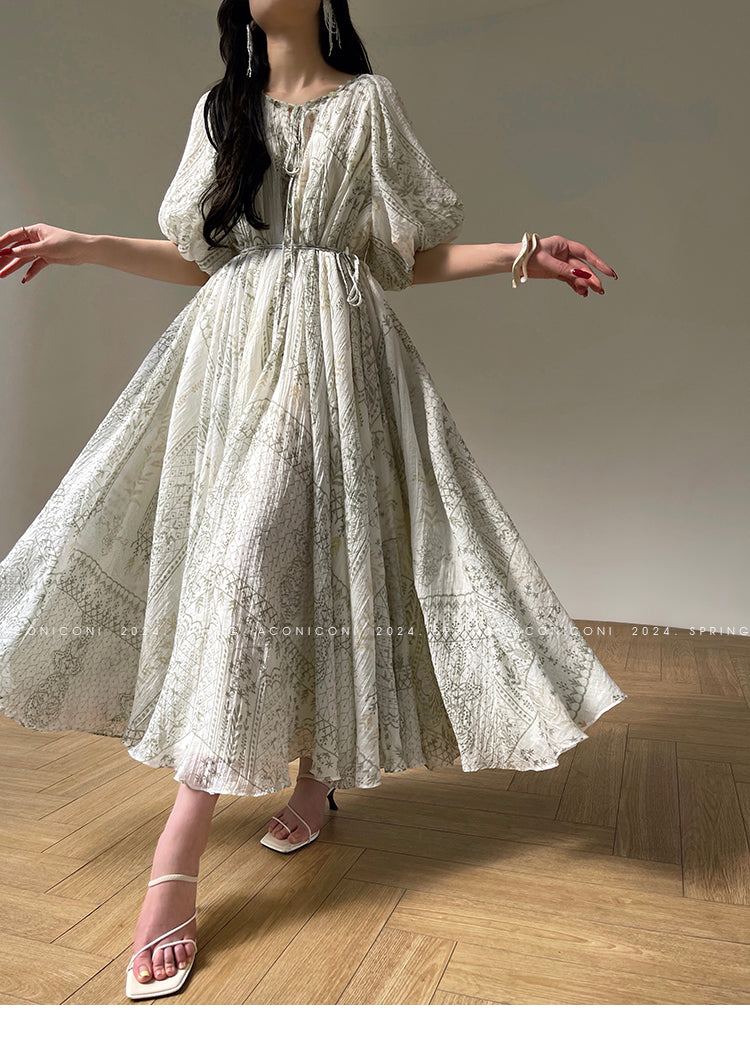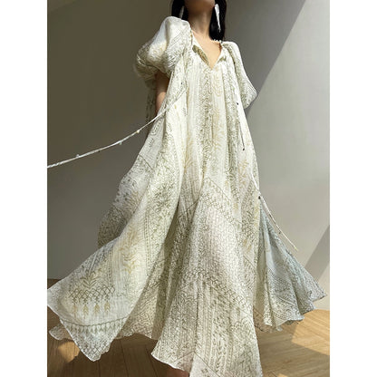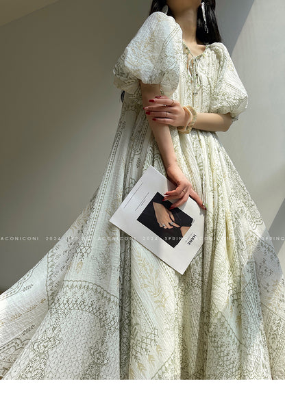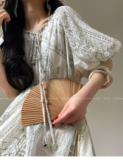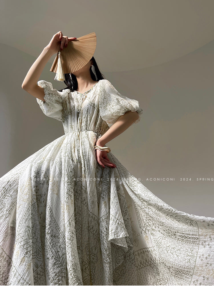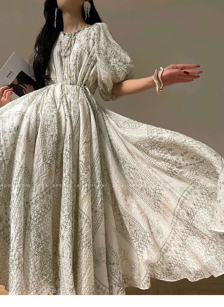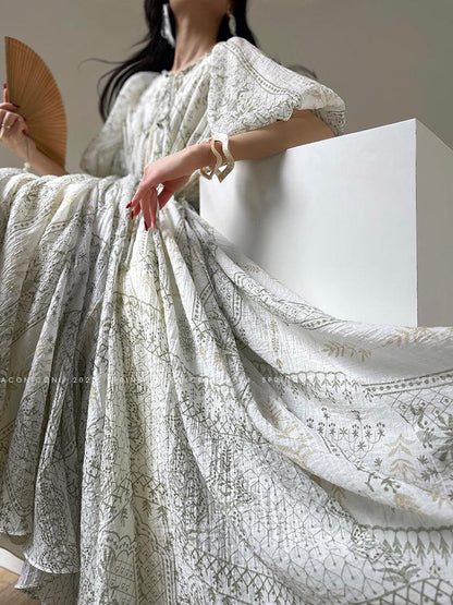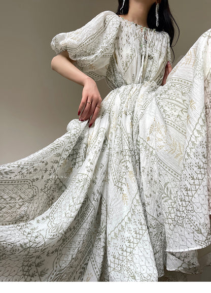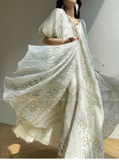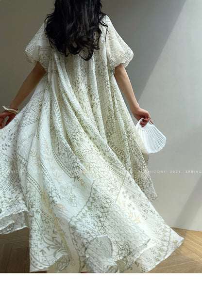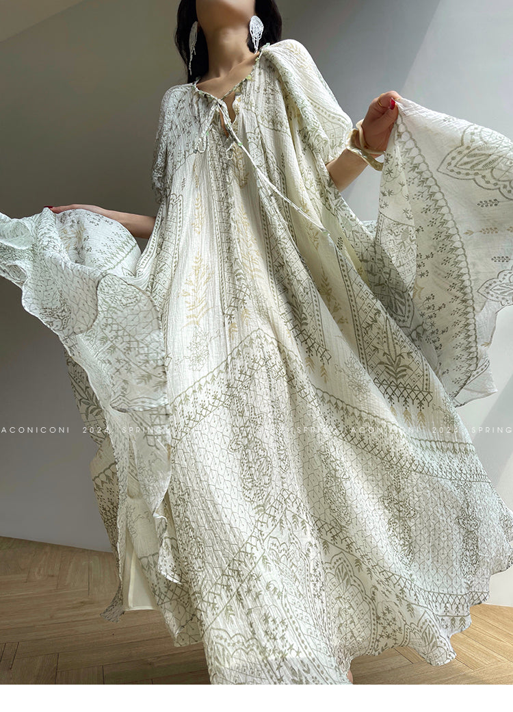 Aconiconi Luxury Short Sleeve Loose Holiday Dress- Coconut Grove Wind