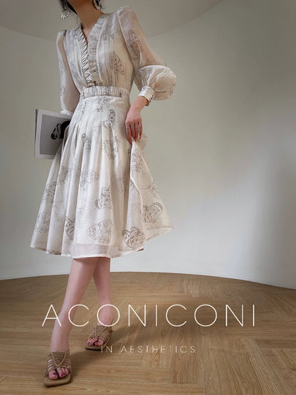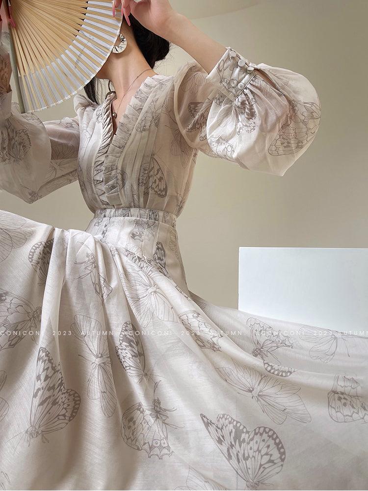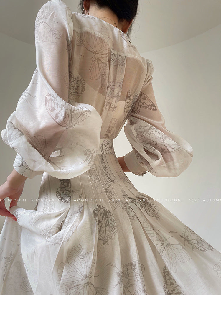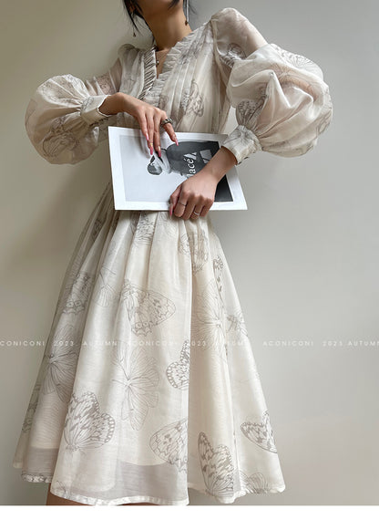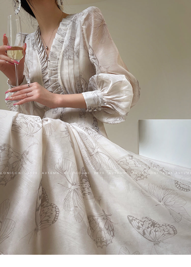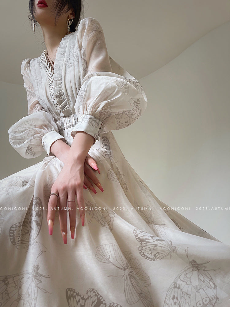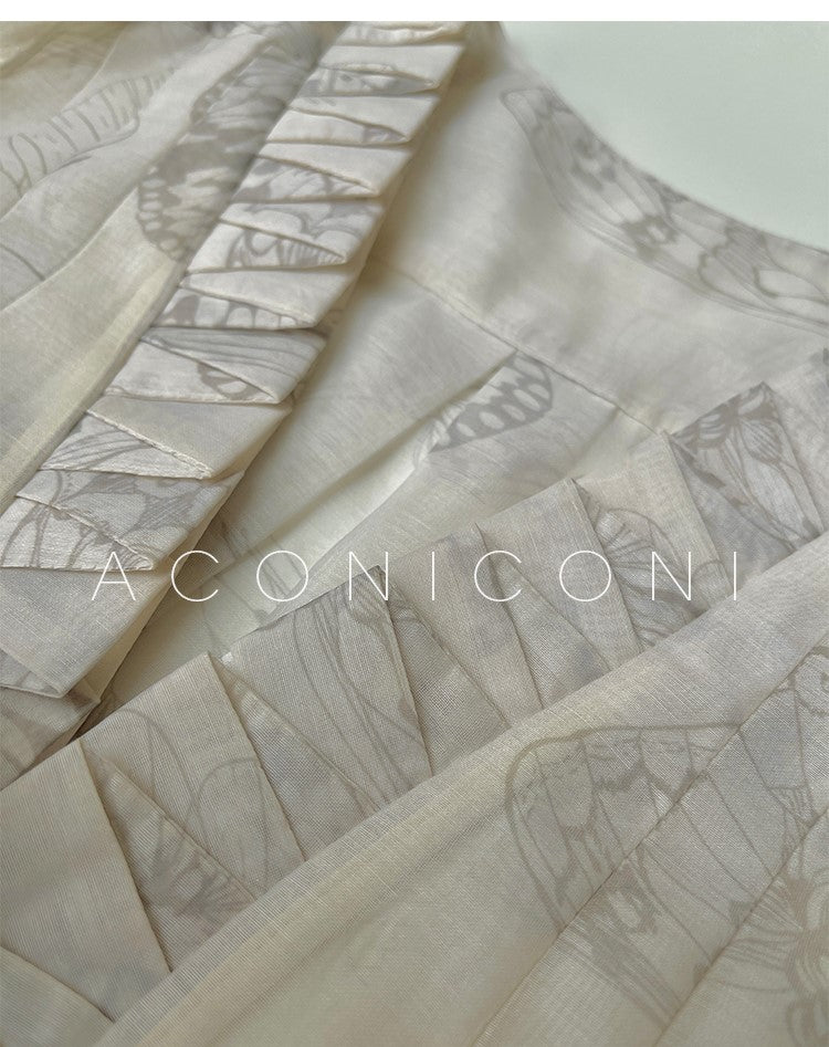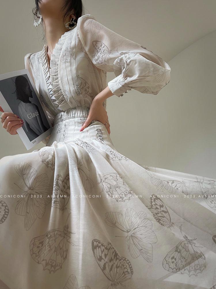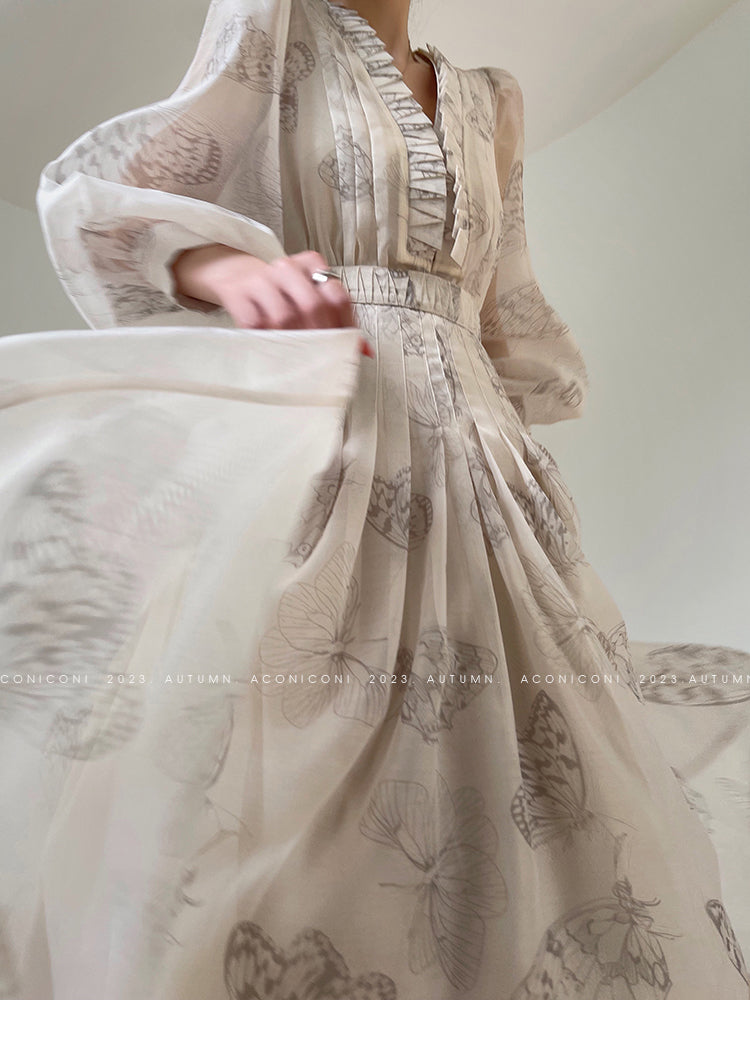 Aconiconi Luxury V-Neck Shirt Sleeve Long Pleated Dinner Dress- Mina Kagawa
