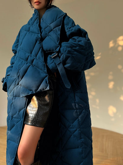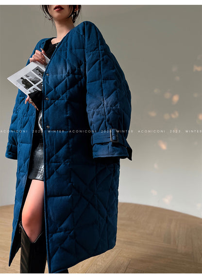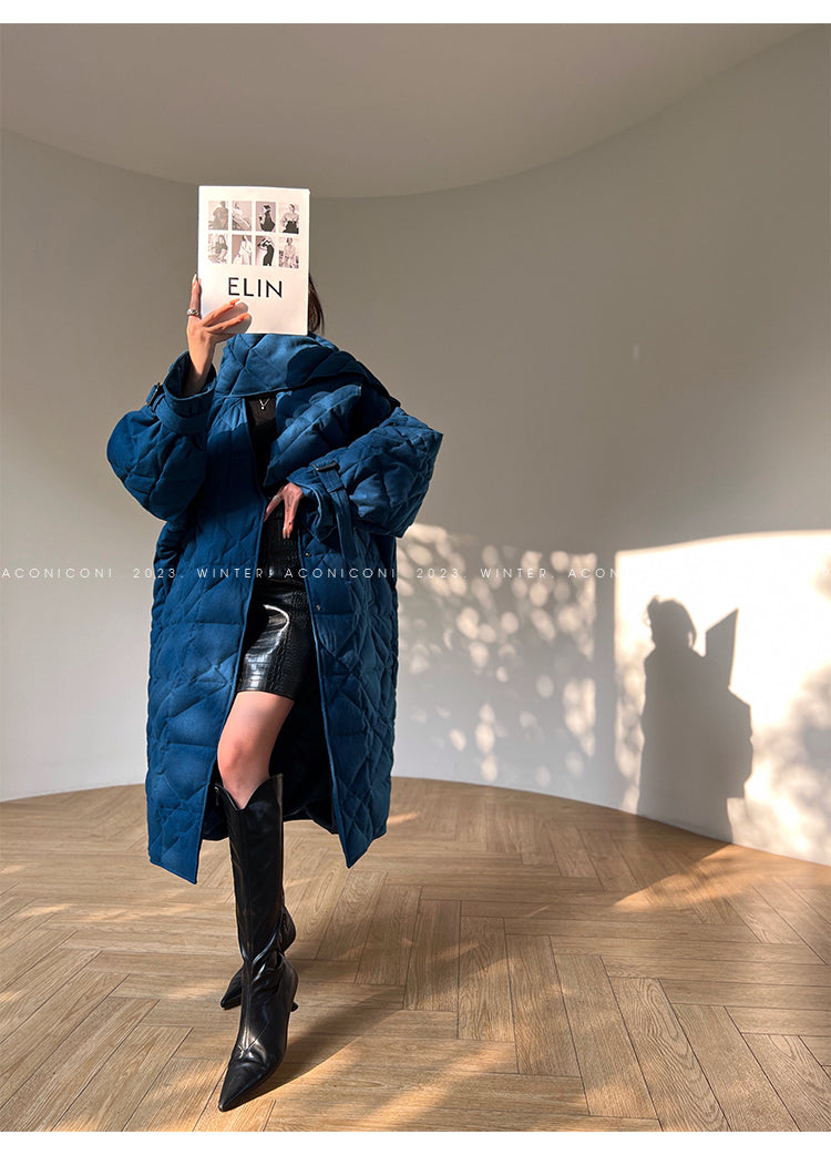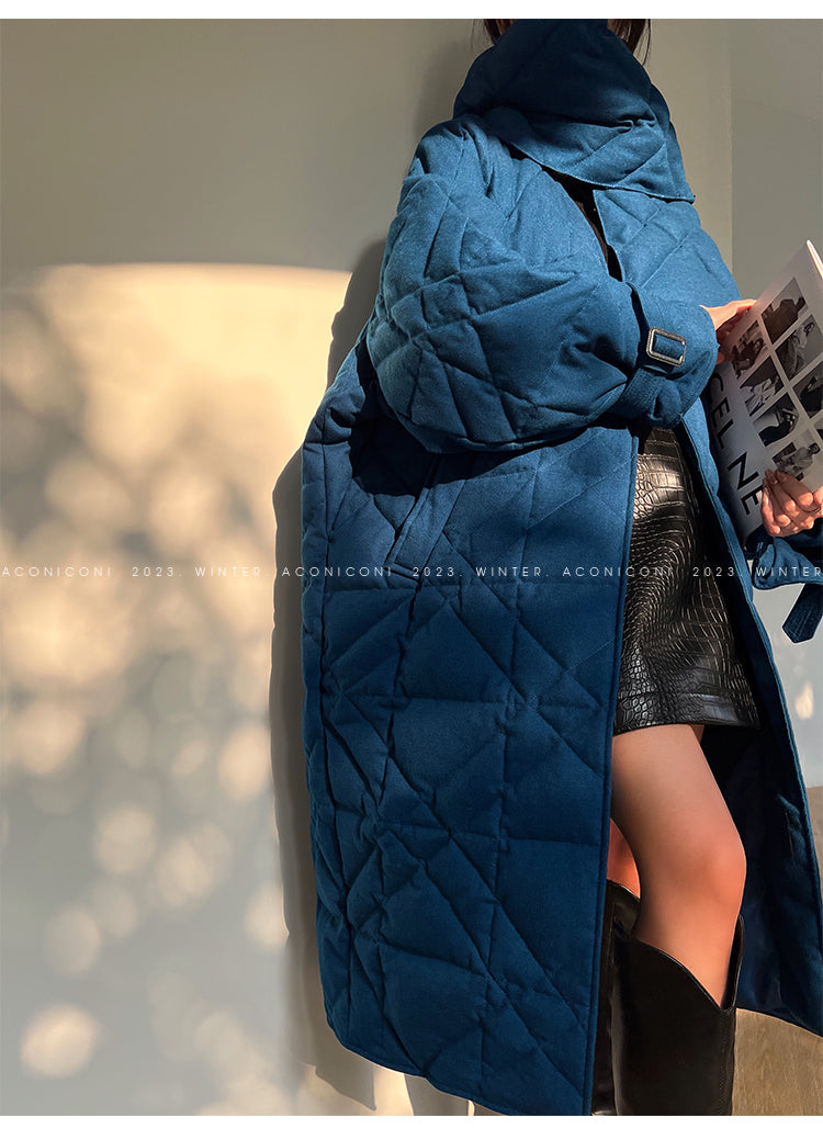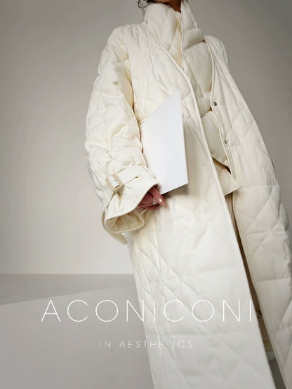 Aconiconi Luxury White/Blue/Black Duck Down Long Sleeve Thick Winter Coat- Muye