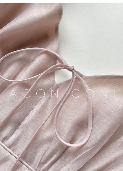 Introducing Aconiconi's Pink French Print Puff Sleeve High Waist Dress-Gina. This sophisticated and exquisite long dress features a chic and flamboyant french print, elegant puff sleeves, and a high waist that creates a flattering silhouette. Perfect for stylish hangouts and classy picnics. Elevate your wardrobe with this fashionable piece.