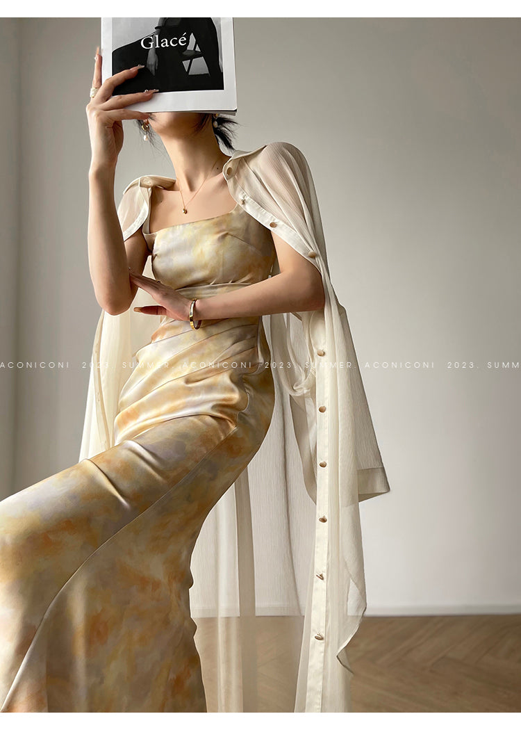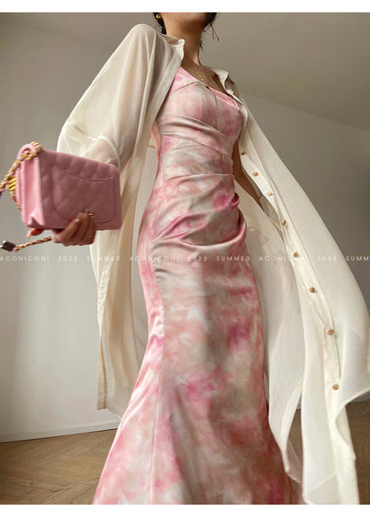 Indulge in the dashing, stunning, and elegant style of the Aconiconi Pink Sleeveless Slip Sunscreen Cardigan Dress-Dora. This gorgeous dress features a unique and flamboyant design, perfect for a chic and classy outing in the fall or autumn season. Exude sophistication and charm with this fashionable and trendy dress, ideal for a picnic or a date.