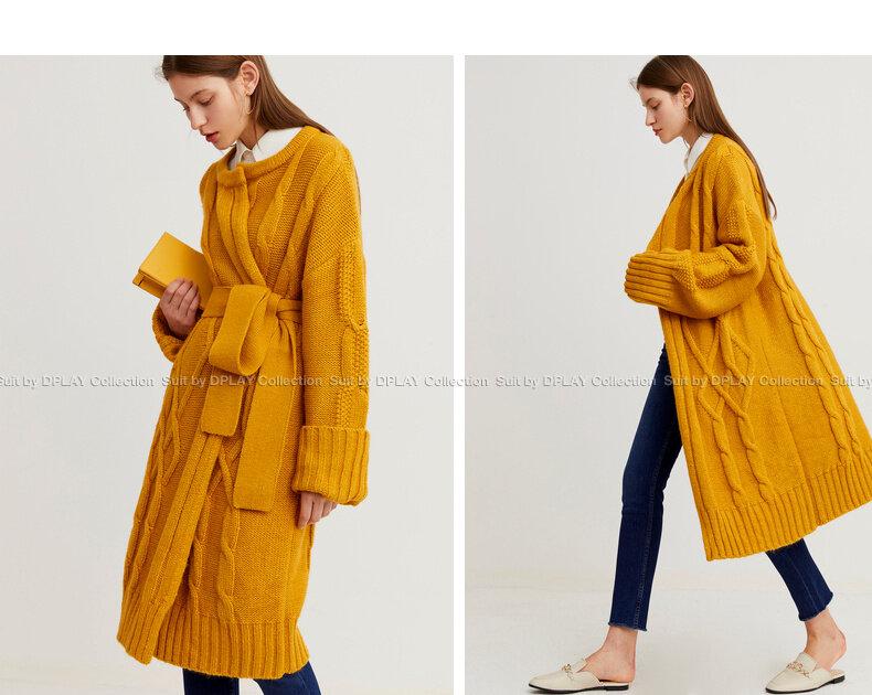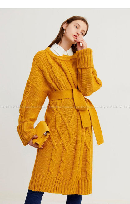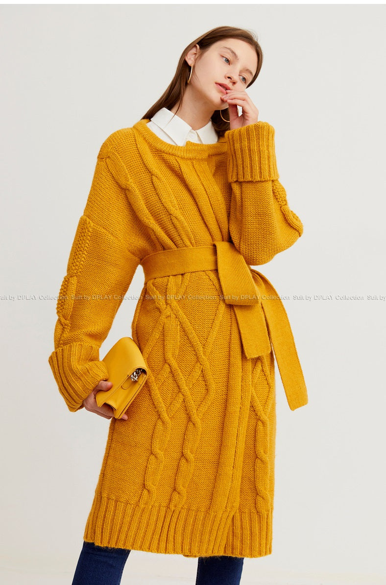 Autumn and winter yellow long loose knitted dress long-sleeved twist-knit cardigan