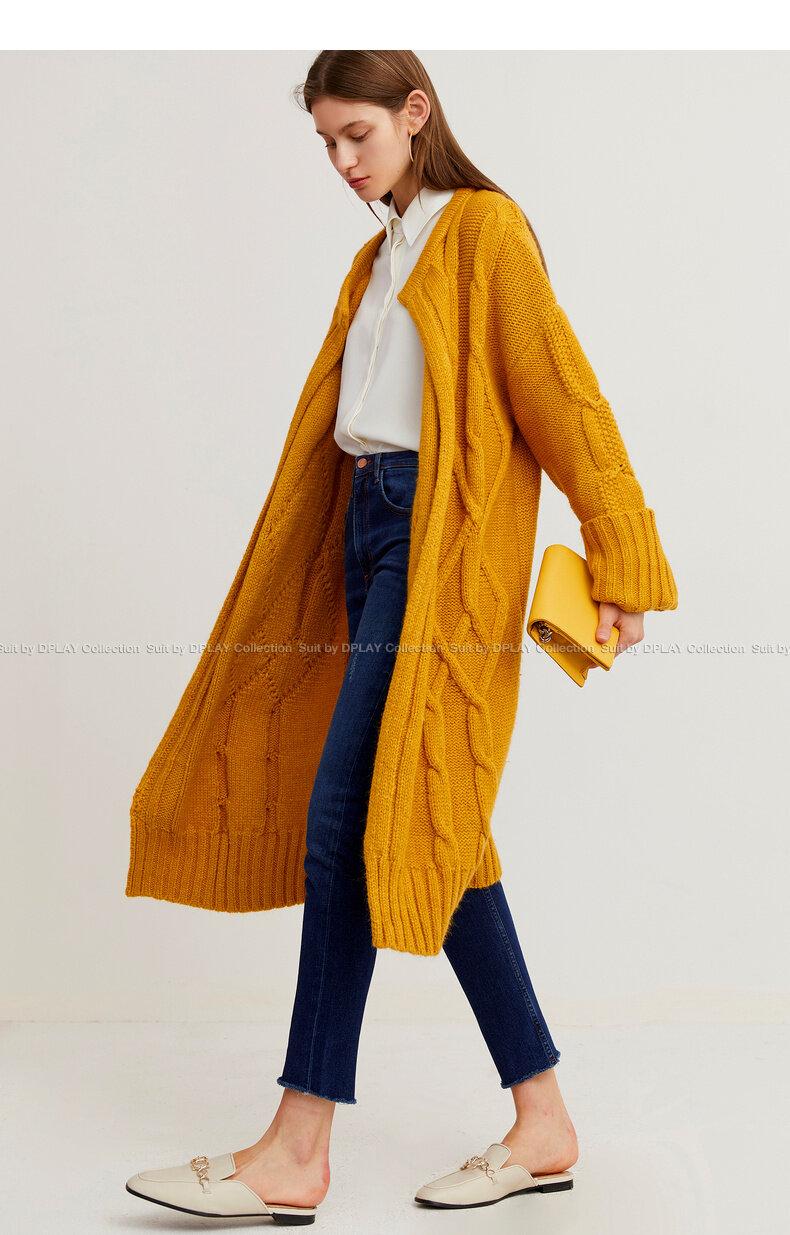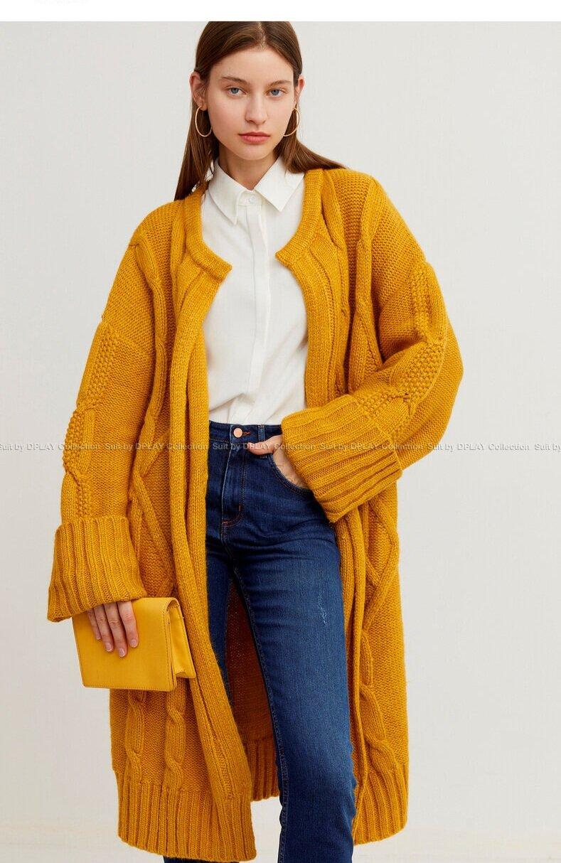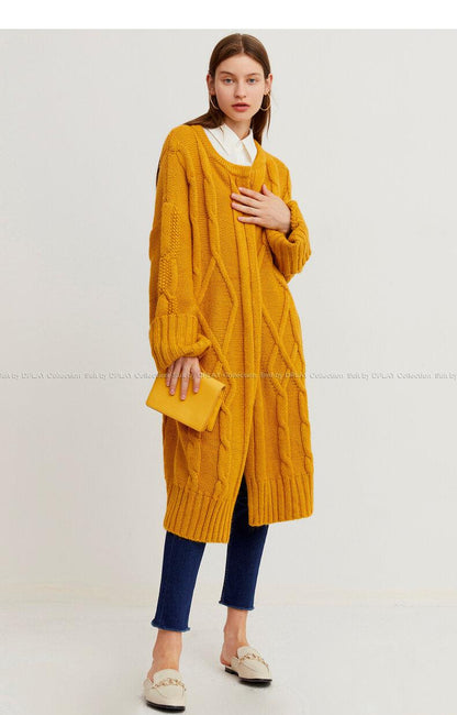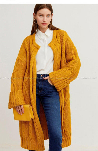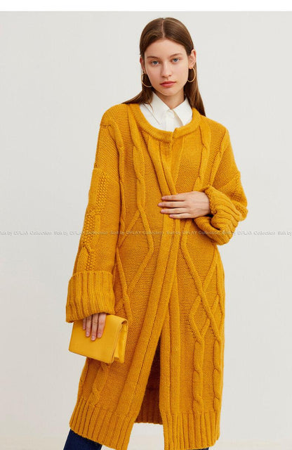 Autumn and winter yellow long loose knitted dress long-sleeved twist-knit cardigan - Inne