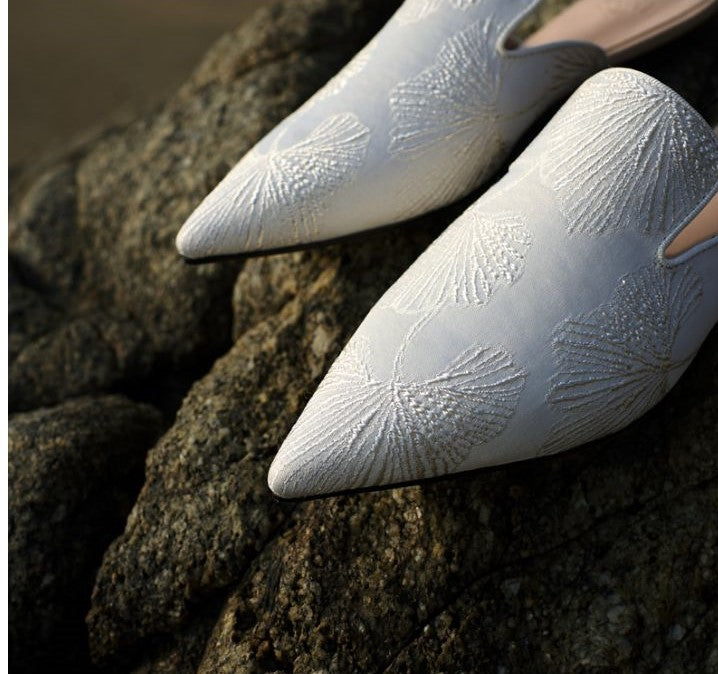 Be stylish yet comfortable with B-FEI Design's Plant Ginkgo French Flat Soles Mule. This chic and elegant shoe is sure to make a dashing statement wherever you go. Its exclusive design pairs sophistication and luxury with modern cool, combining the best of both worlds. Be fashion forward with B-FEI Design.