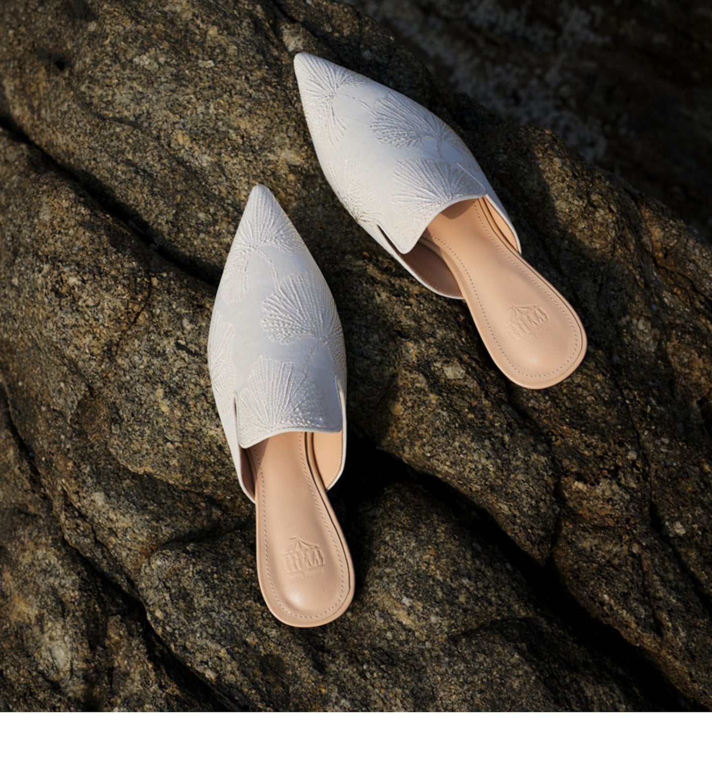 B-FEI design plant ginkgo French flat soles mule - Xia