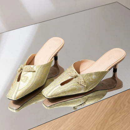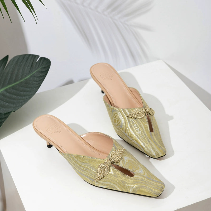 Elevate your look with the B-FEI o Chinese style new square-topped kitten heel mule - Shior. Featuring a chic and dashing design, this gorgeous mule will add an extra touch of elegance to any look. With an exclusive style, these mules are guaranteed to become your new favourite.