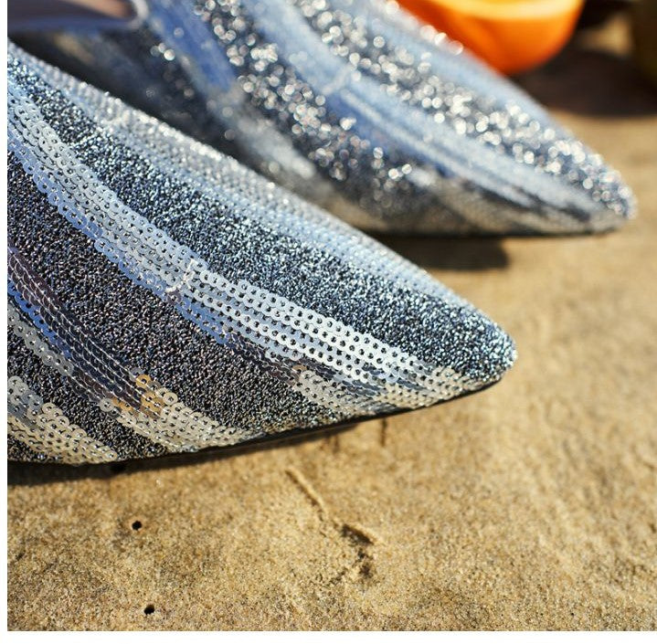 Experience effortless extravagance with these B-FEI Original Design Glitter Geometry French Half Drag Mules. Imbued with a captivating, tantalizing glitter finish, these mules inspire chic luxury and an air of exclusivity. With their dashing geometric shapes, these mules will transform your style with their pellucid sophistication.