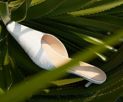 Turn heads at your special occasion in these sophisticated B-FEI jacquard mules. Featuring an elegant square toe and chic kitten heel, and crafted with a unique wedding rose pattern, these gorgeous bridal mules will ensure you look effortlessly classy at your big day. For a stylish look that will last long after the wedding cake is cut.