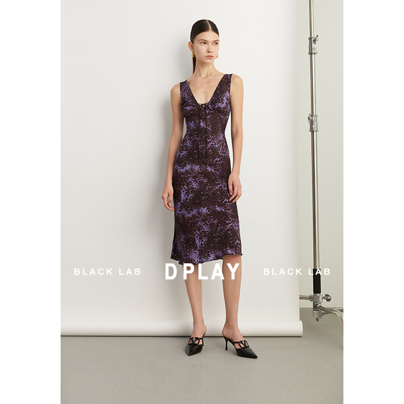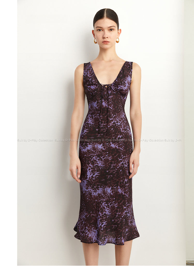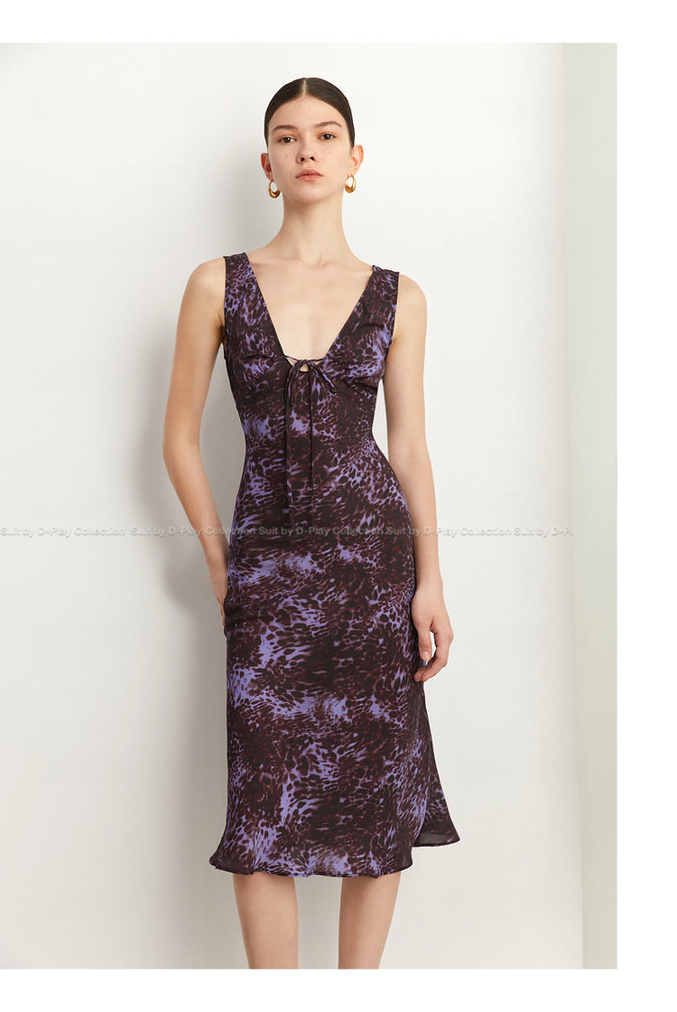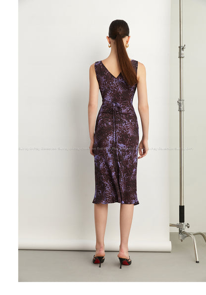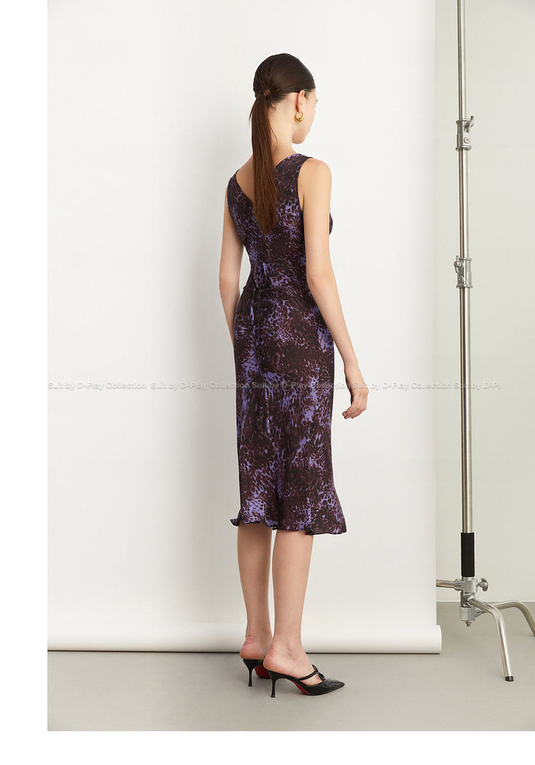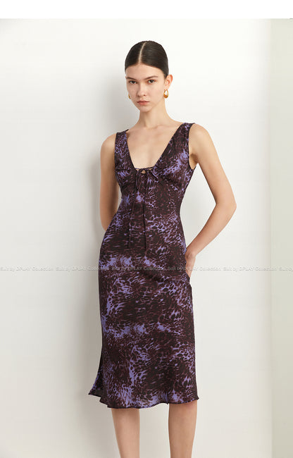 Black Label French holiday Style Purple V Neck Lacetic Sleeveless Dress - Osiiy