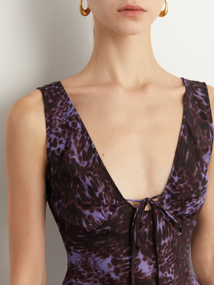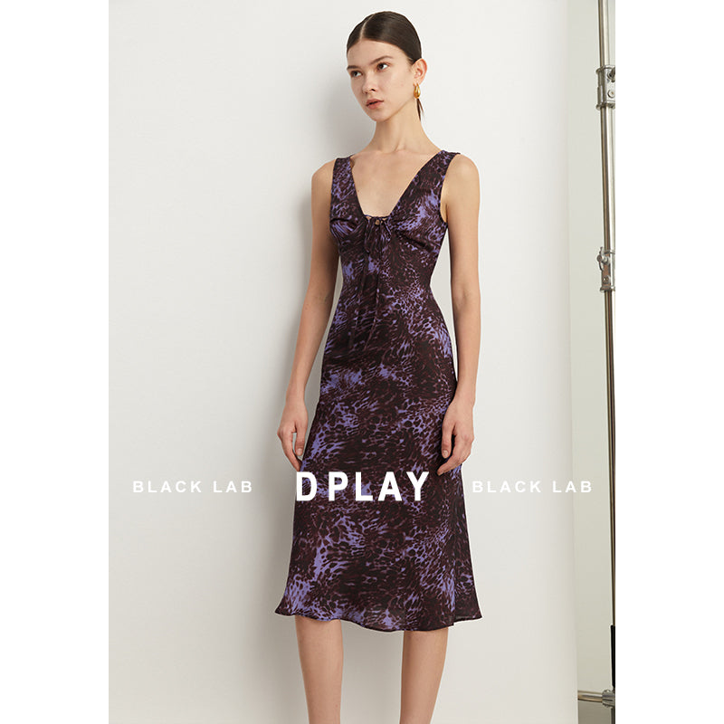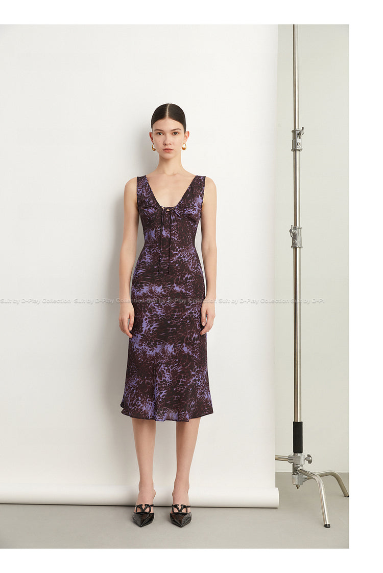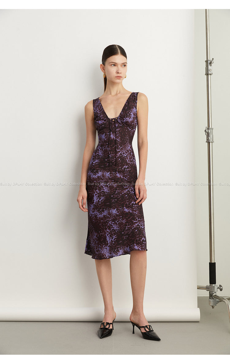 Black Label French holiday Style Purple V Neck Lacetic Sleeveless Dress - Osiiy