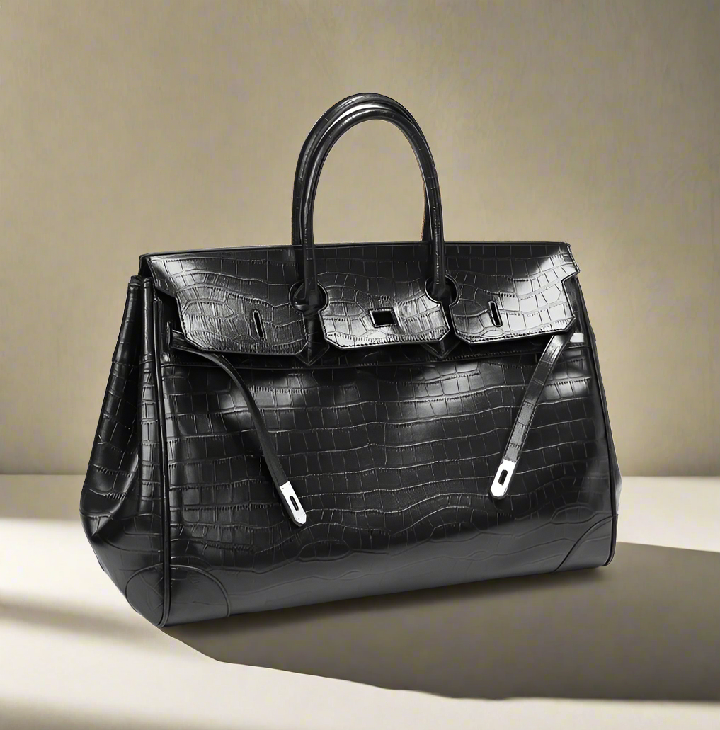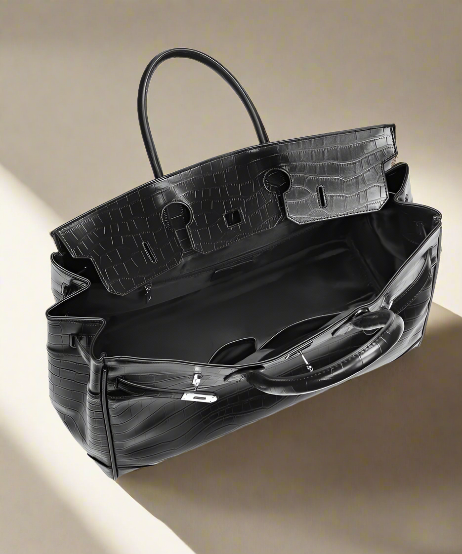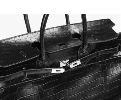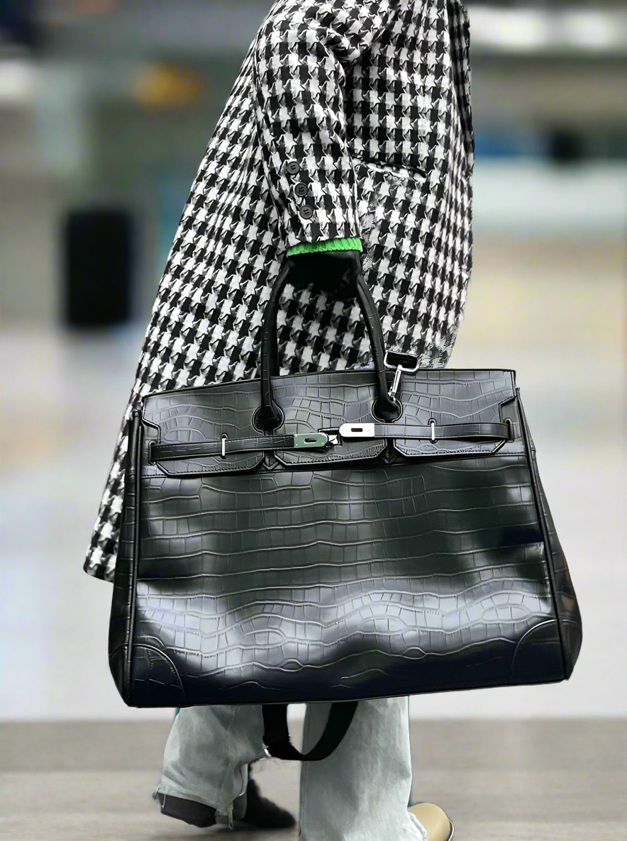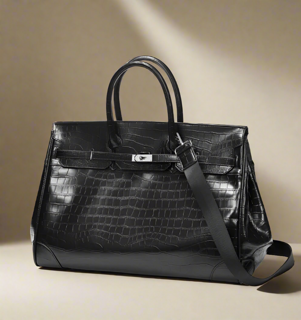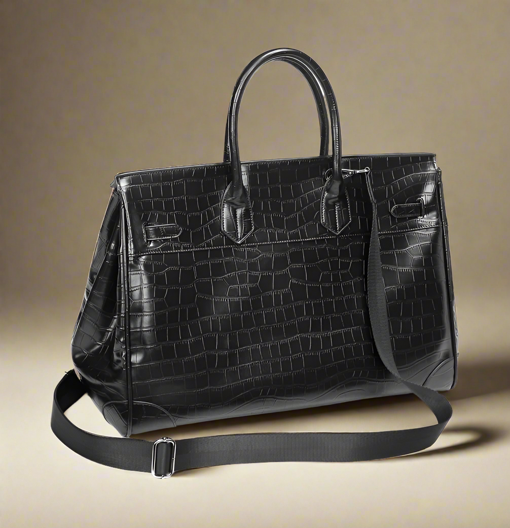 Black Platinum birkin inspired croc pattern overnight weekend tote high street travel weekender bag