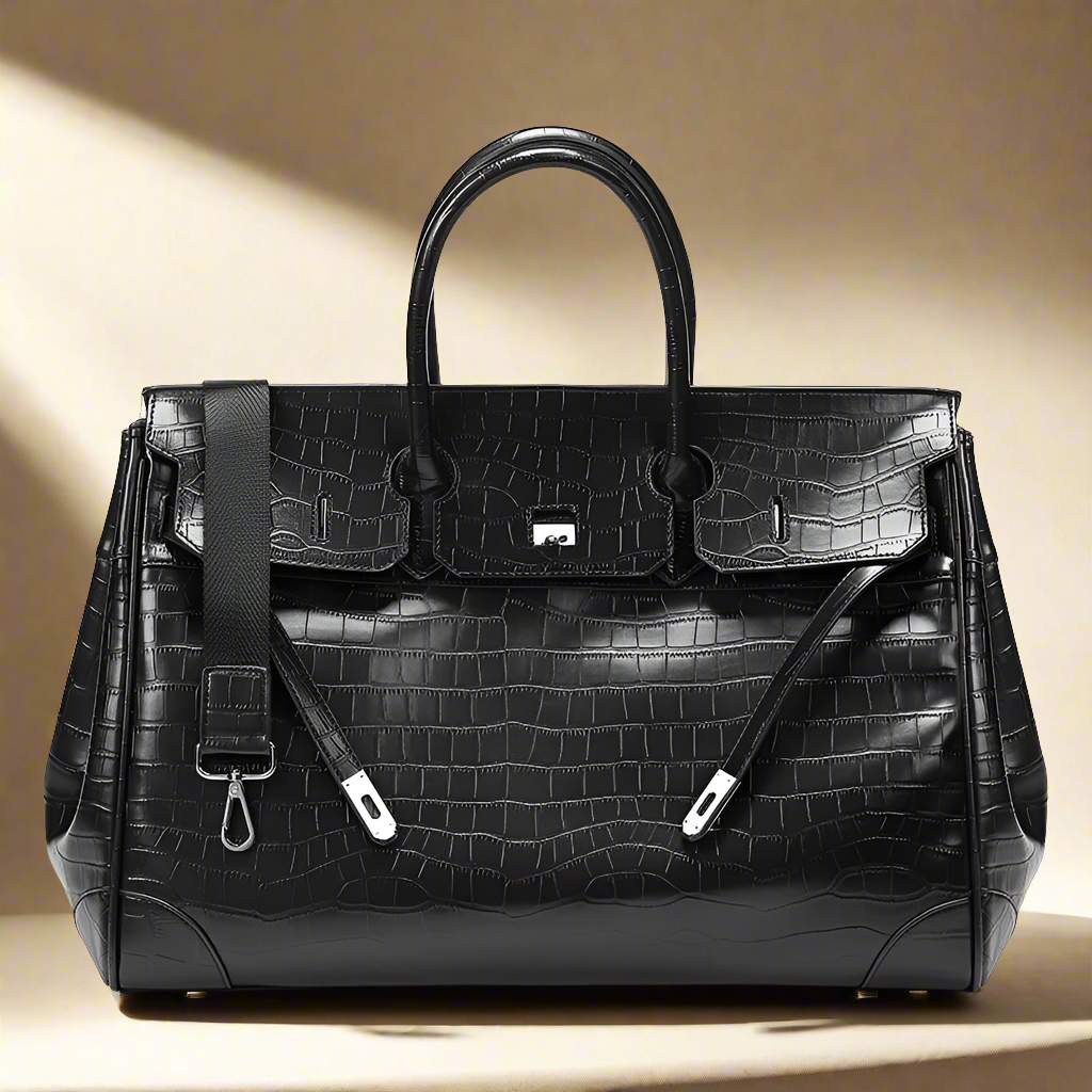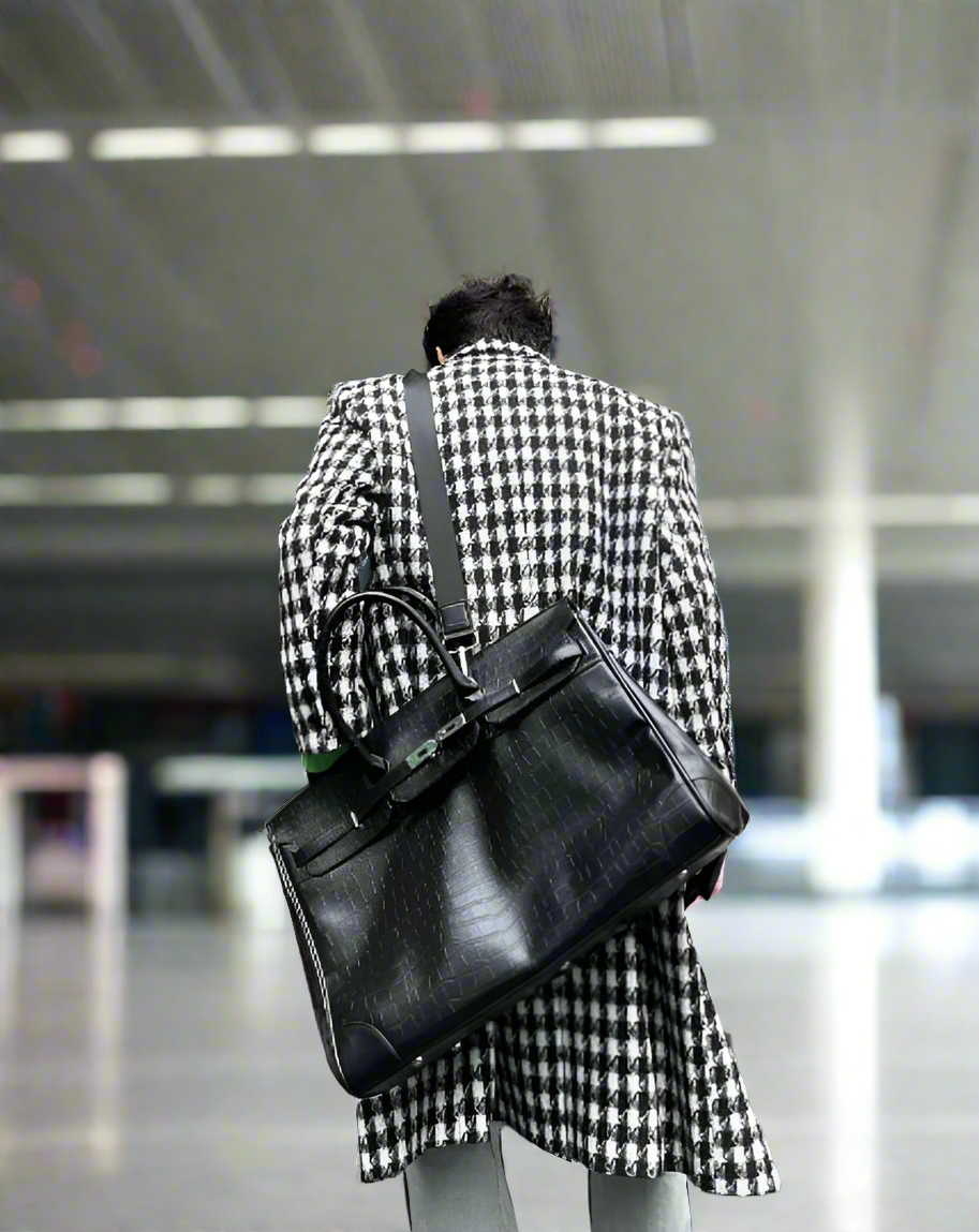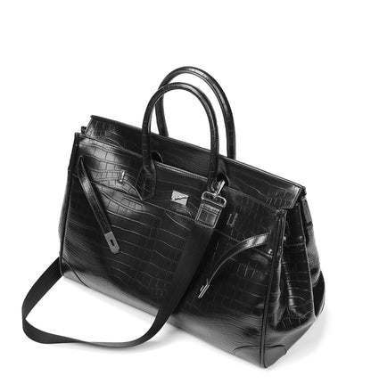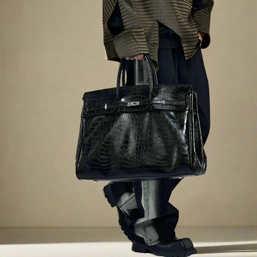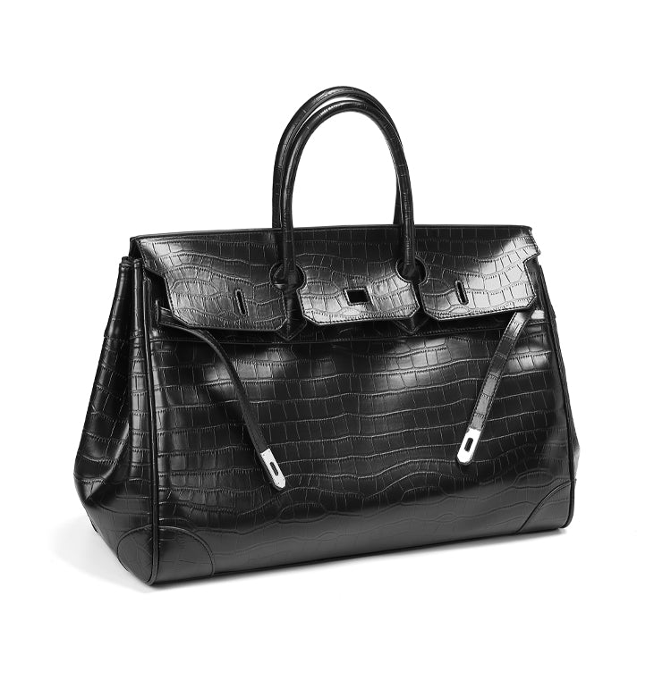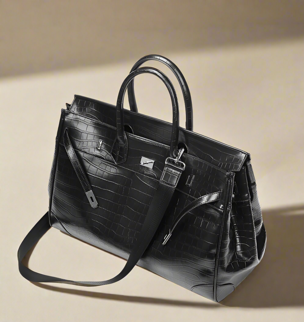 Black Platinum birkin inspired croc pattern overnight weekend tote high street travel weekender bag