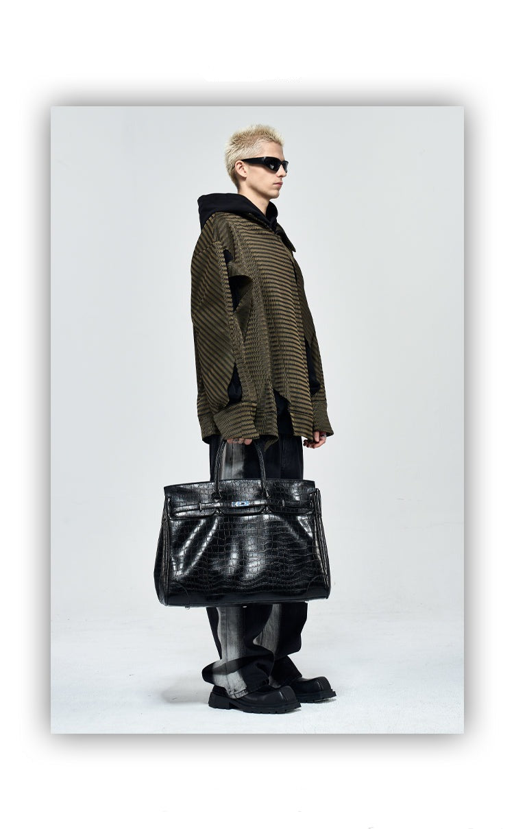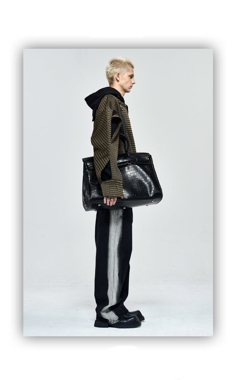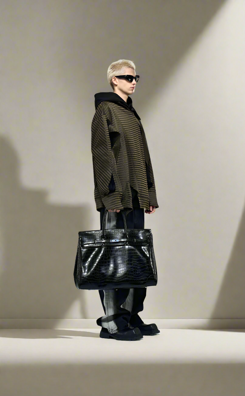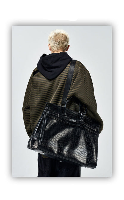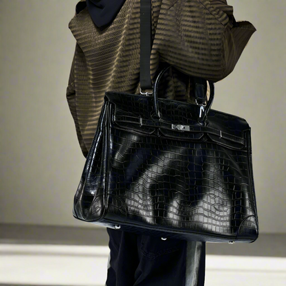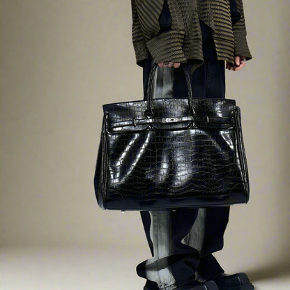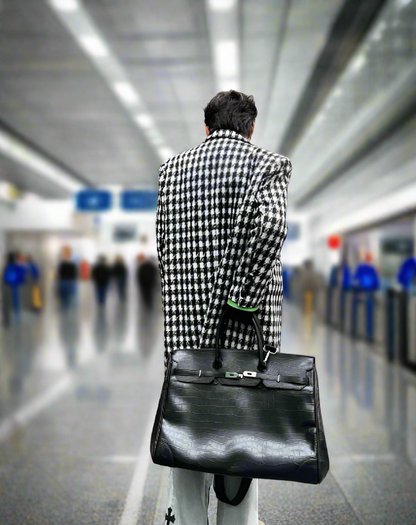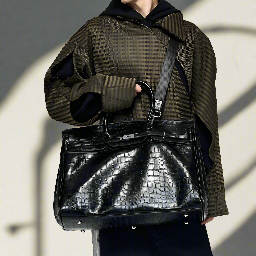 Black Platinum birkin inspired croc pattern overnight weekend tote high street travel weekender bag