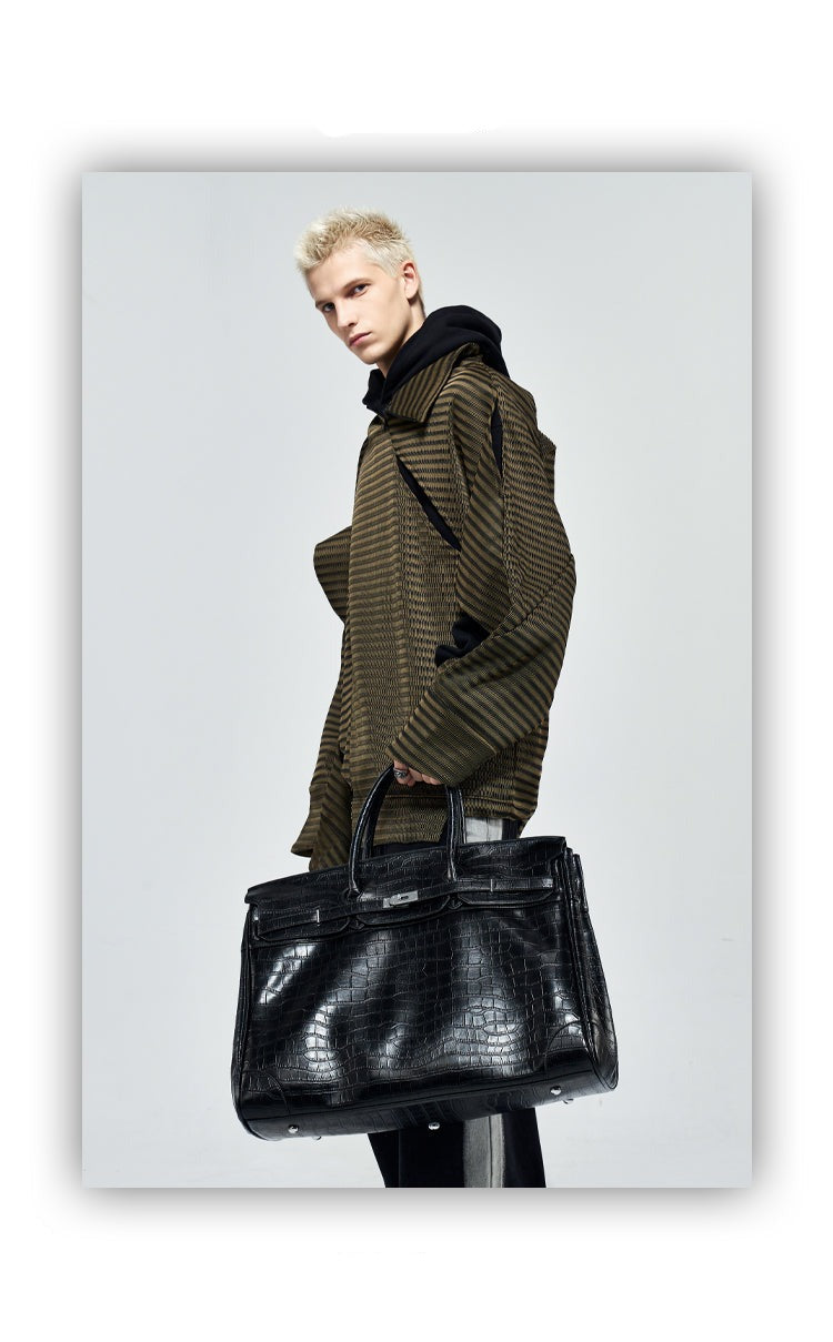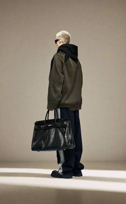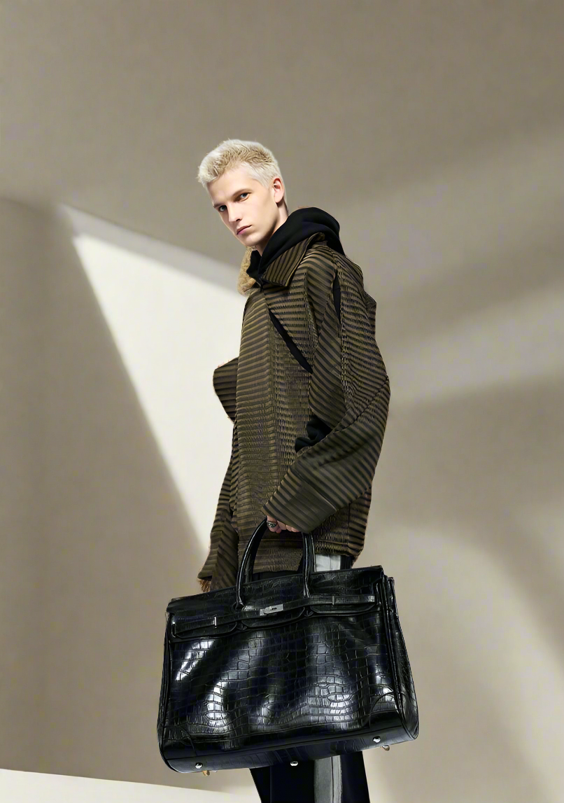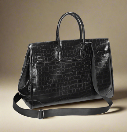 Exclusively crafted for the modern fashion aficionado, this Platinum Birkin-inspired travel weekender bag is designed with a crisp crocodile patterned PU leather that comprises the perfect combination of classic and chic sophistication. Featuring large carry-on capabilities, this luxury travel bag is equally suitable for both men and women seeking a fashionable and timeless accessory to accompany them on their adventures.
