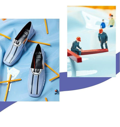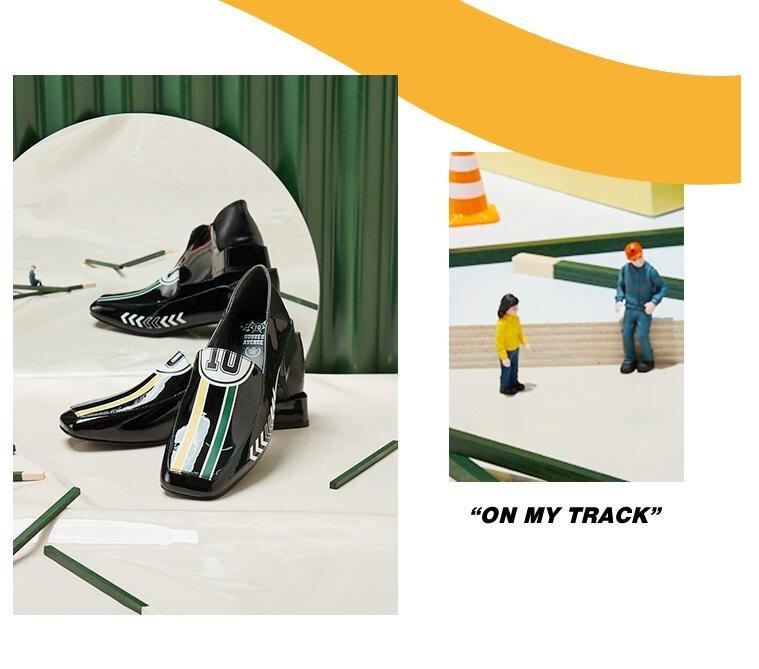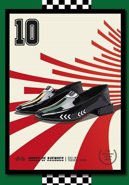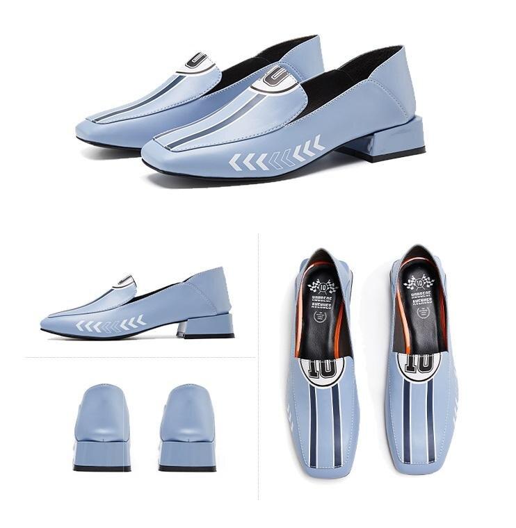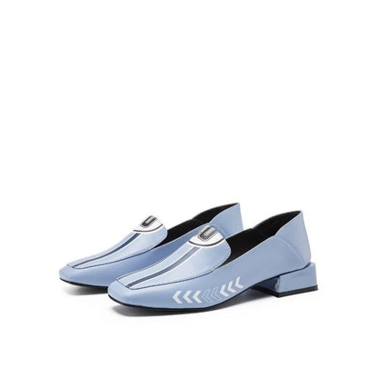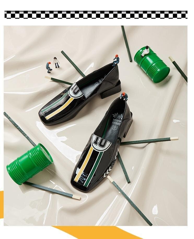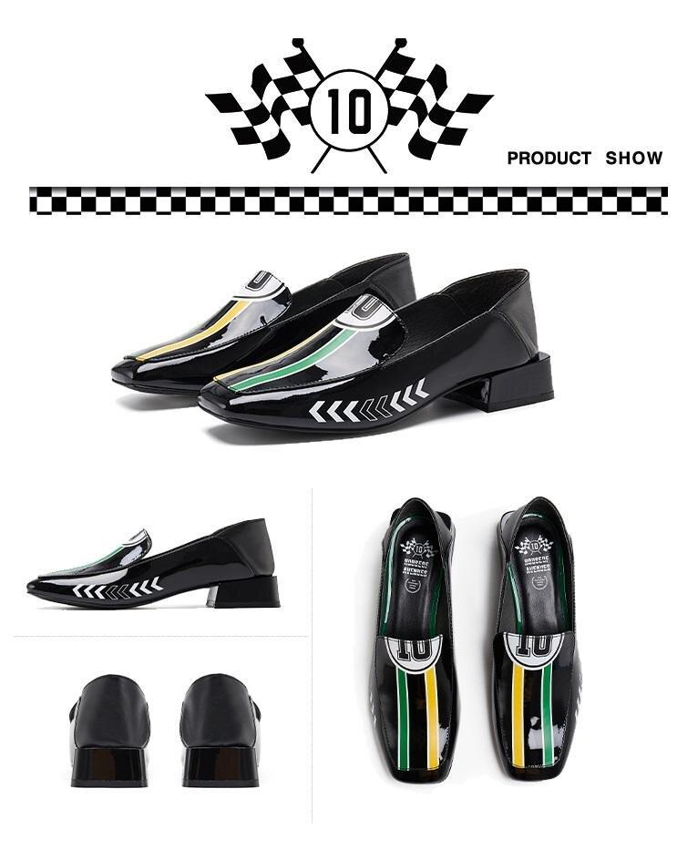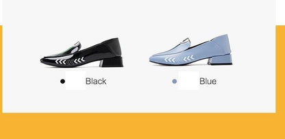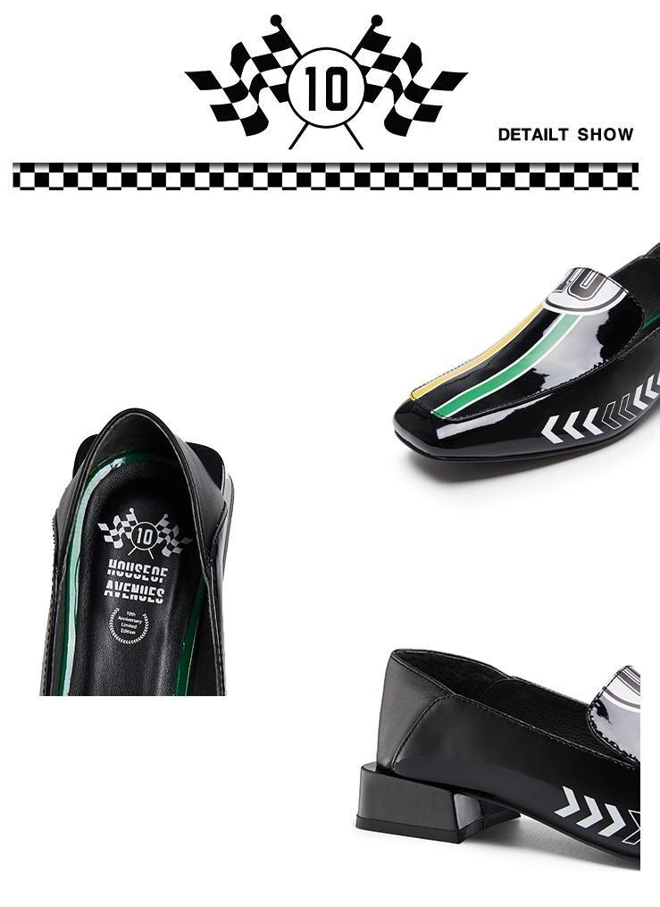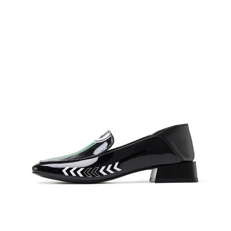 Black Rider Pattern Loafer square heel low women's oxford loafer shoes - Hars