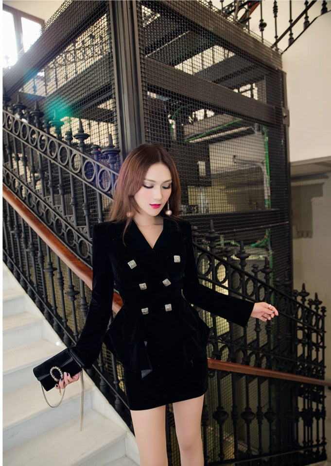 Black Velvet Skirt Suit - Sookyung