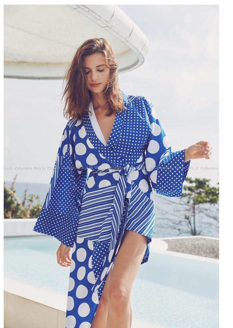 Blue wave point irregular Japanese holiday straps seaside cardigan kimino - Raf