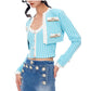 This bold and beautiful "Ari" two-piece outfit will make you look like a Barbie in no time! A cropped tank top in bright, barbie blue, paired with a striped white and blue cardigan - so fun, flirty, and cute! Get ready to rock it with some serious girly swag!