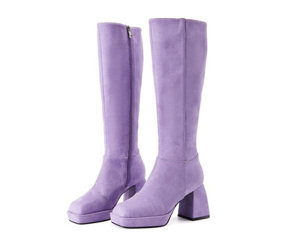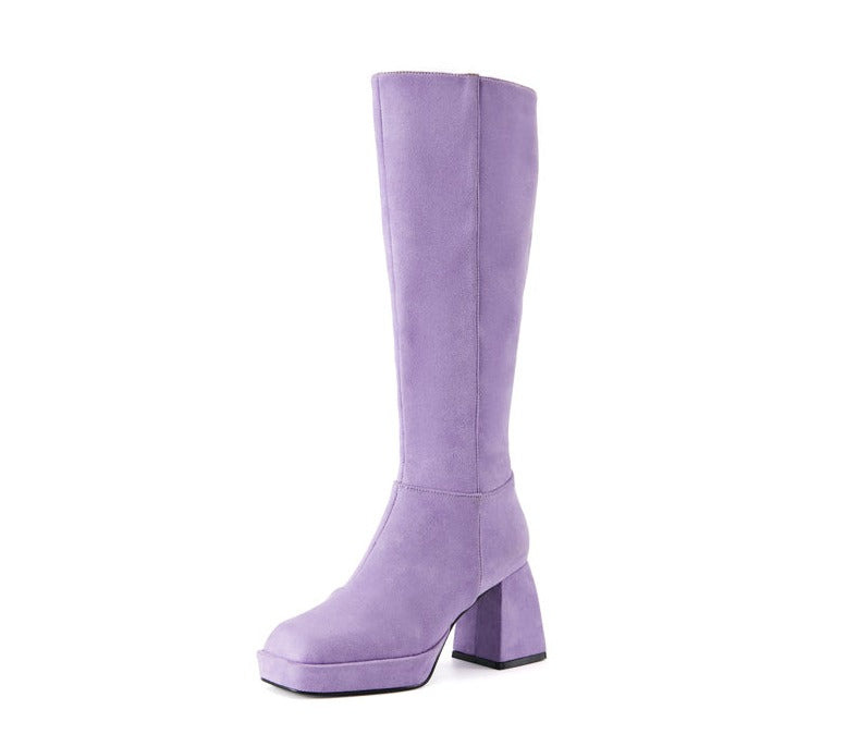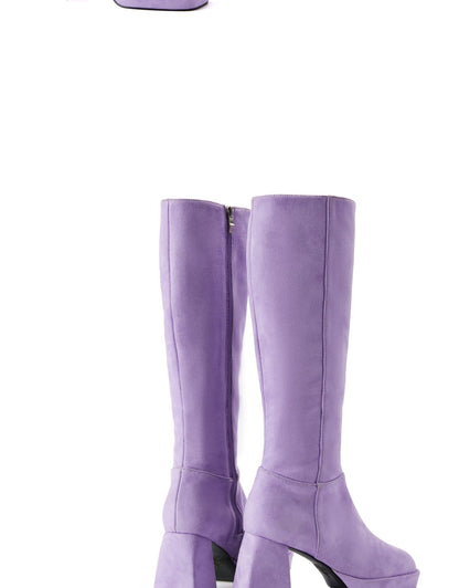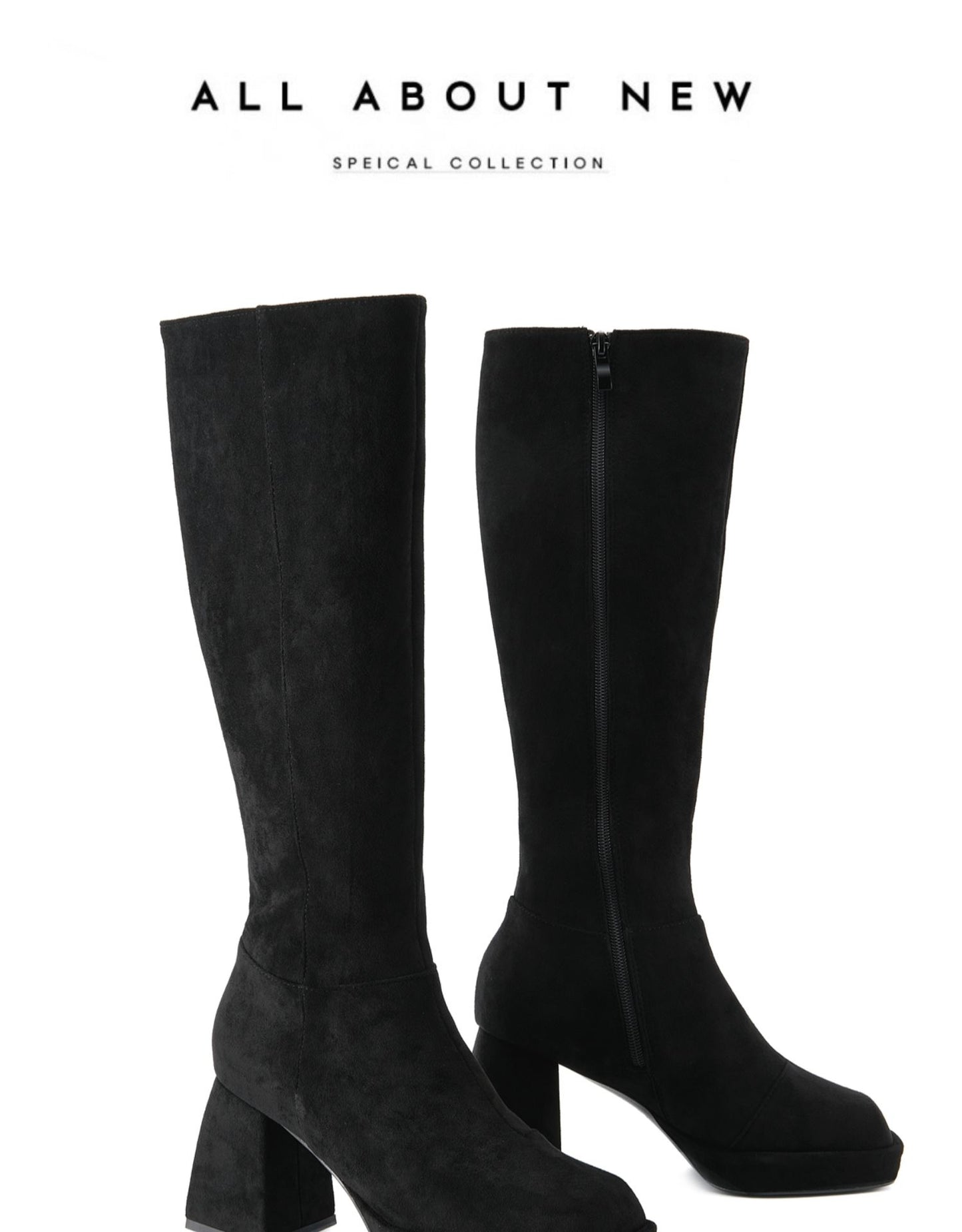 B-FEI pink thick-soled suede boots thick heel high tube- Lora