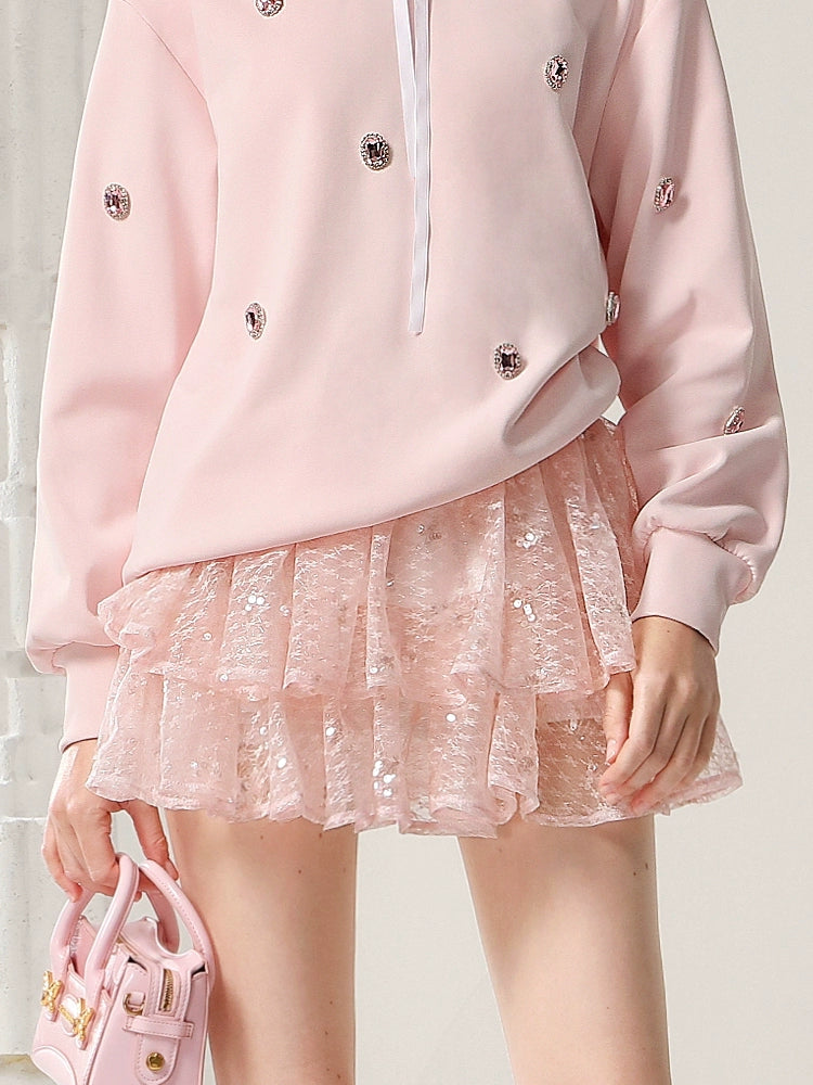 Embrace your feminine side with this enchanting pink mini skirt from CHECOCRE's Spring 2025 collection. Beautifully crafted with layered pleats and delicate mesh fabric, this skirt catches the light with subtle sequin accents. The playful length and airy construction create a flattering silhouette that moves gracefully with every step. A perfect addition to your warm-weather wardrobe.