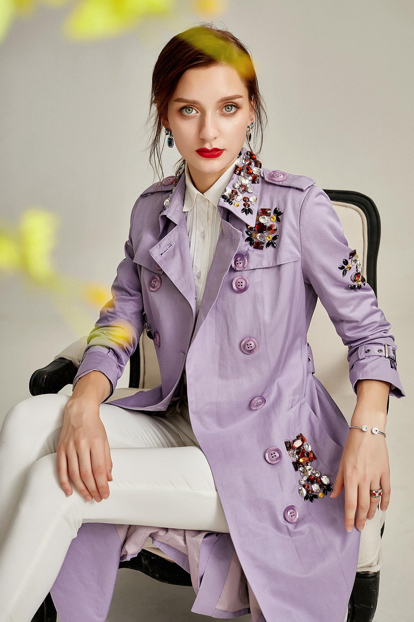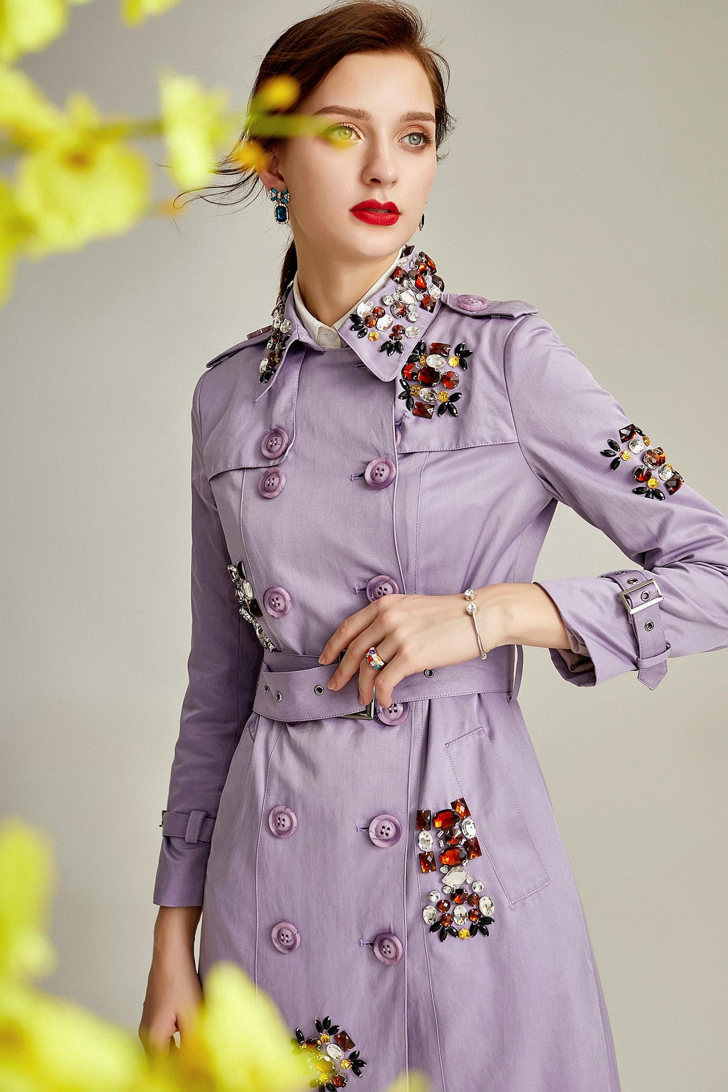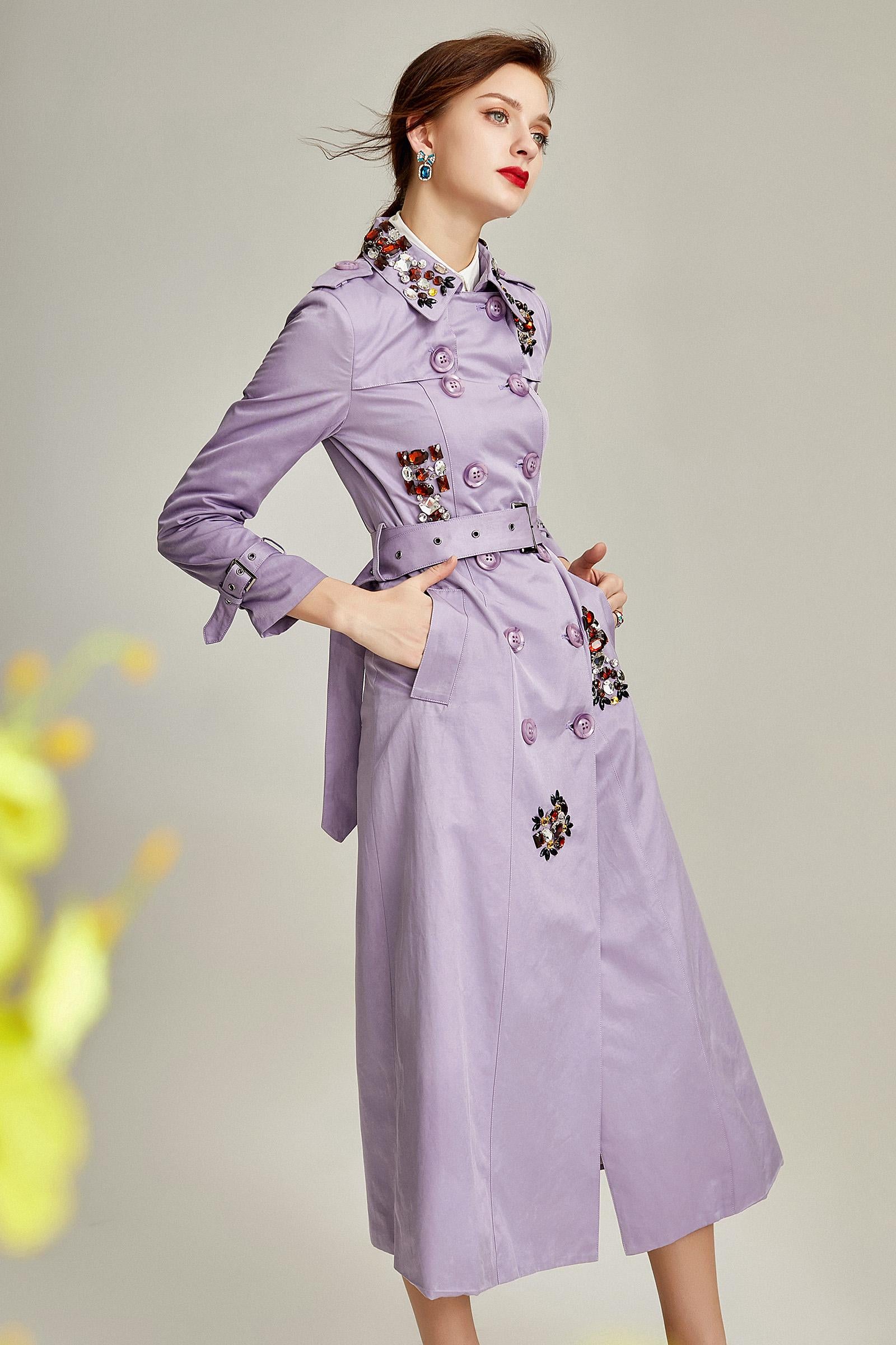 Classic autumn winter luxury limited edition handmade beaded trench coat - Siaha
