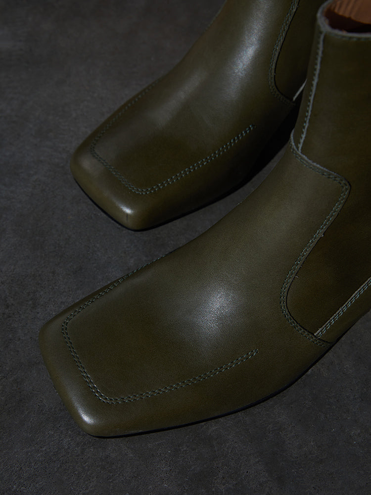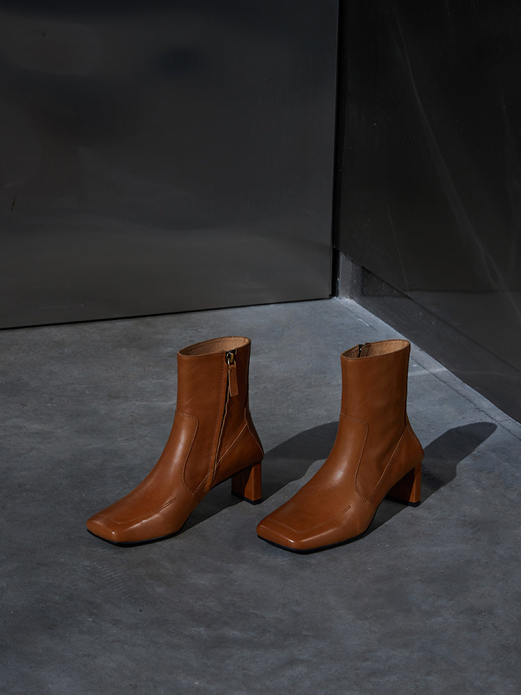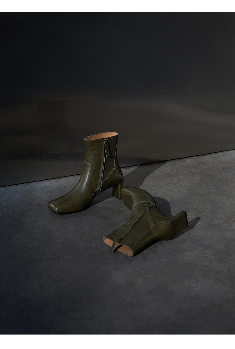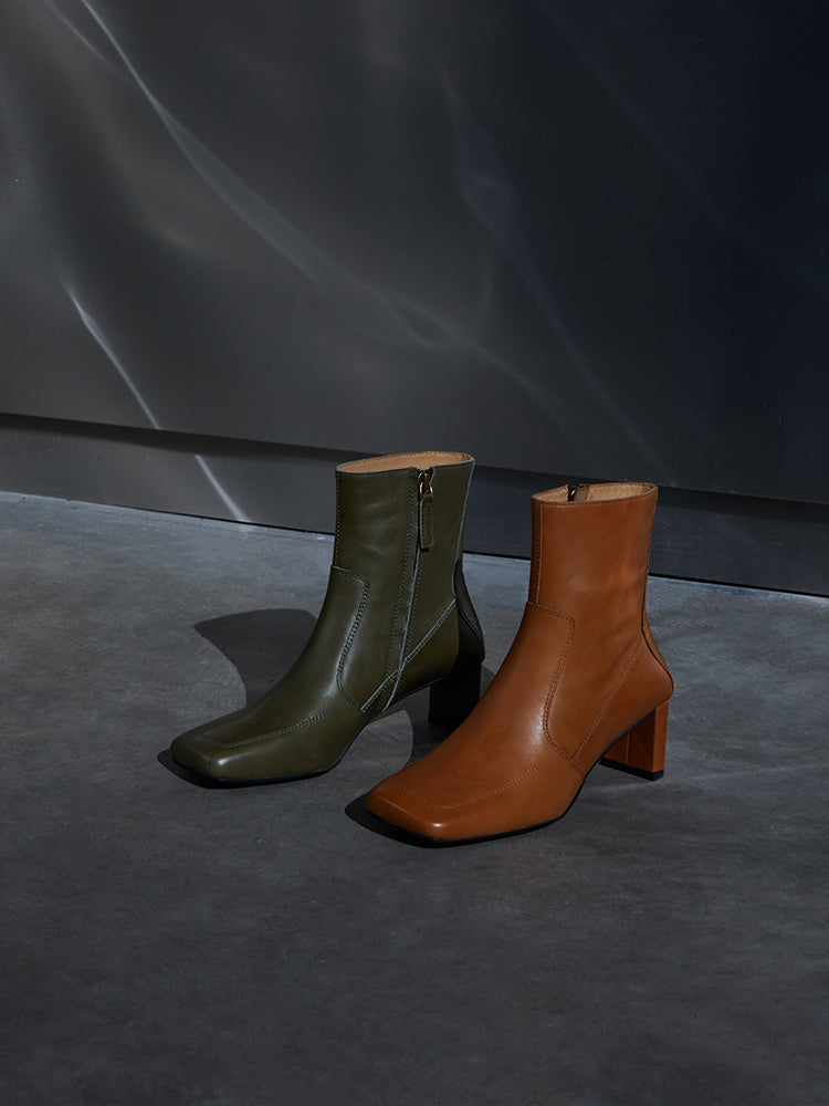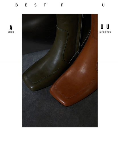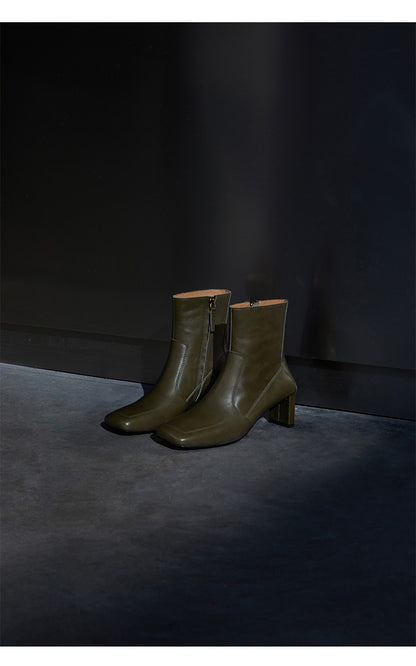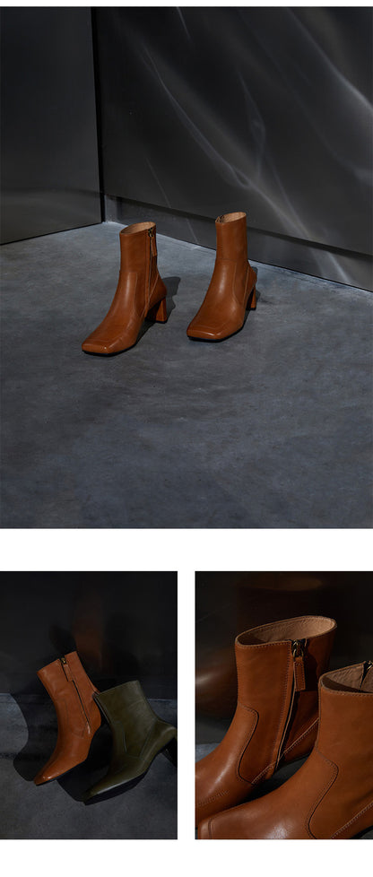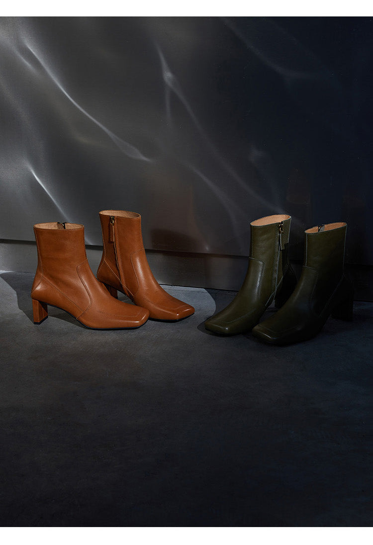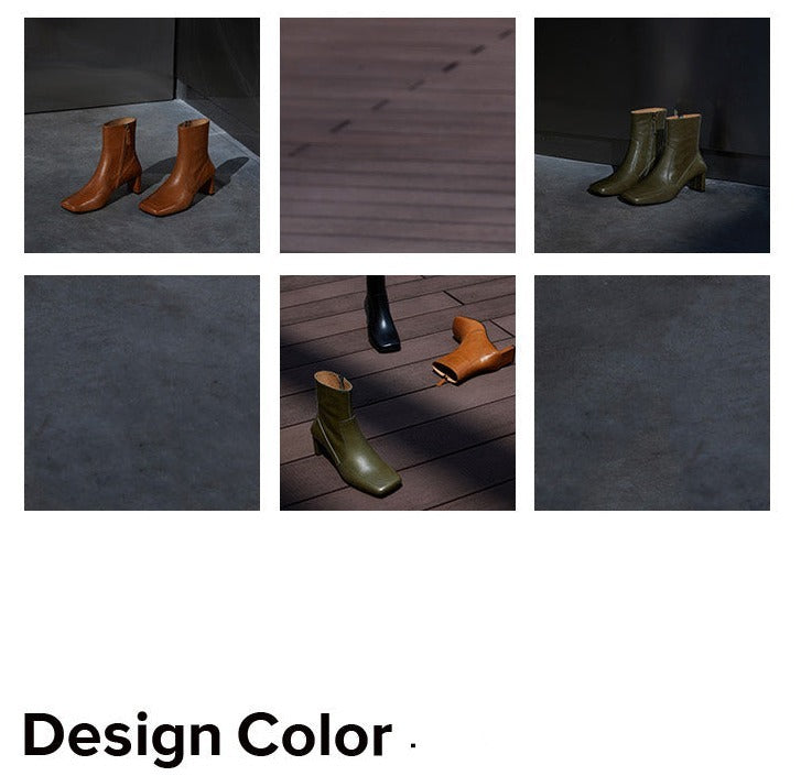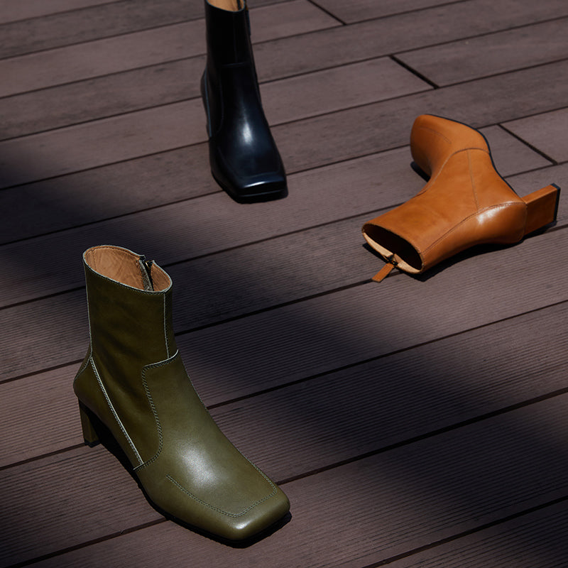 This stylish pair of Samira boots feature a side zipper closure and plain pattern for a unique, retro-style look. The short tube and high 5-8cm heel design come in 5 different colors: Sundial yellow, Sundial, Obsidian black, Mata Green, and Mata Green. These warm winter fashion boots have a square head toe, regular thickness, and a square heel style. The upper inner, insole, and boot surface are all constructed with quality, water-dyed, first-layer cowhide leather.