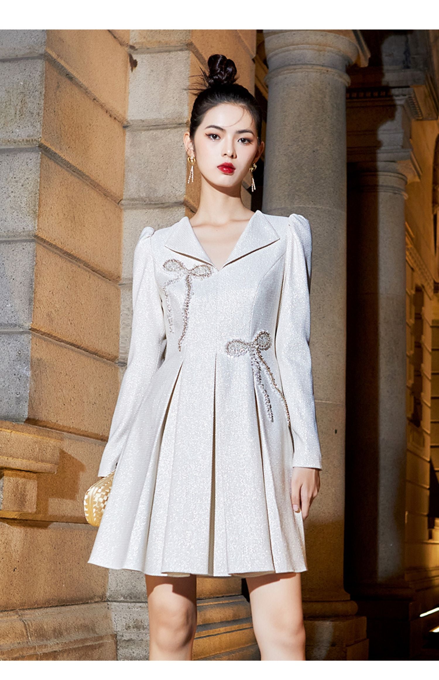 Beaded design with a contemporary fashion long sleeve dress- Chrisa