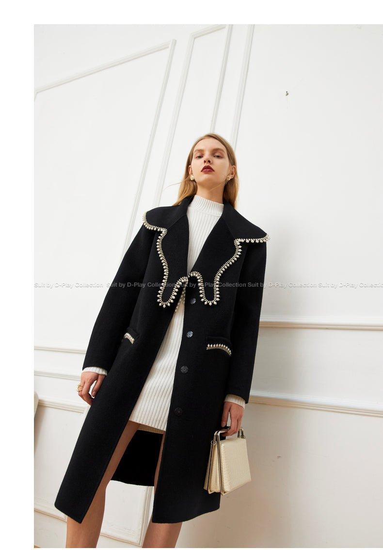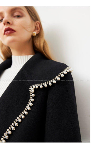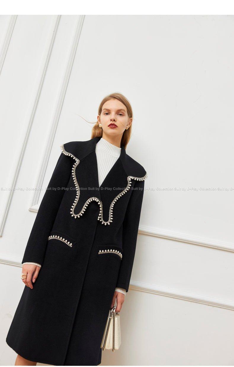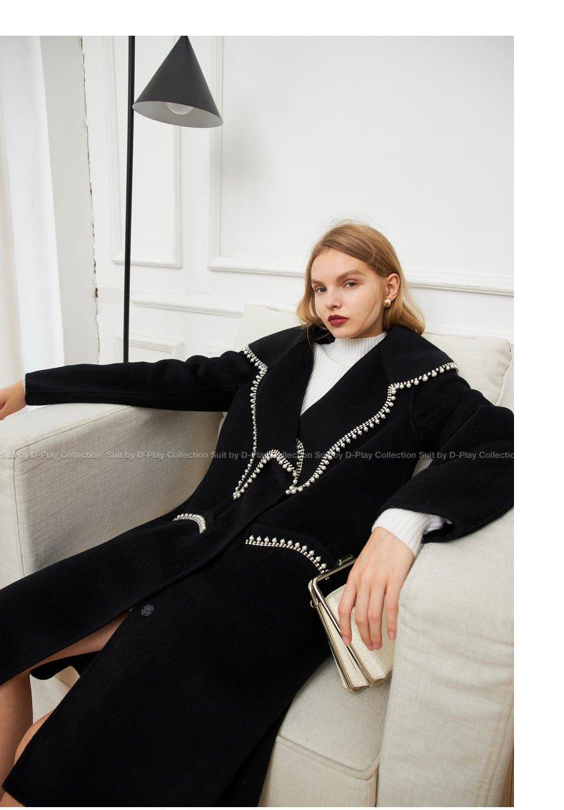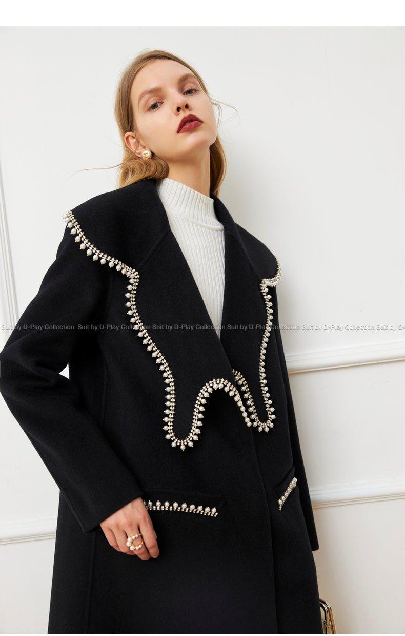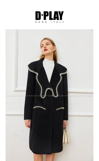 DPLAY Fall Winter Black Pearl Collar 100% Wool Reversible Jacket coat - Usi