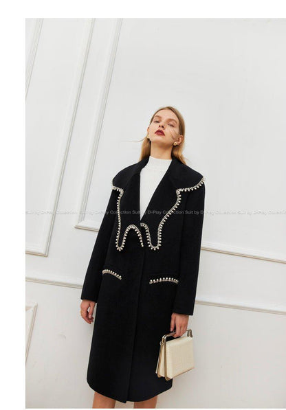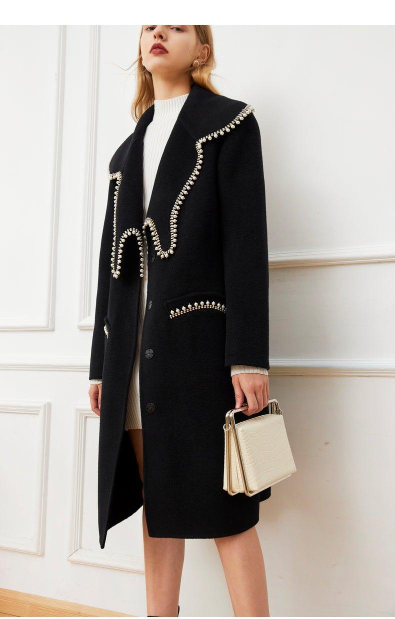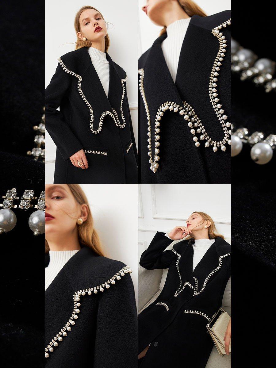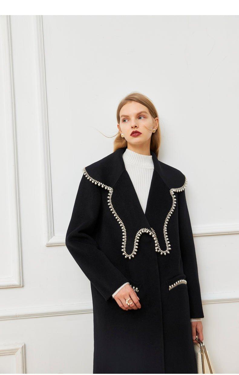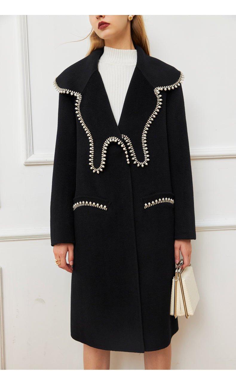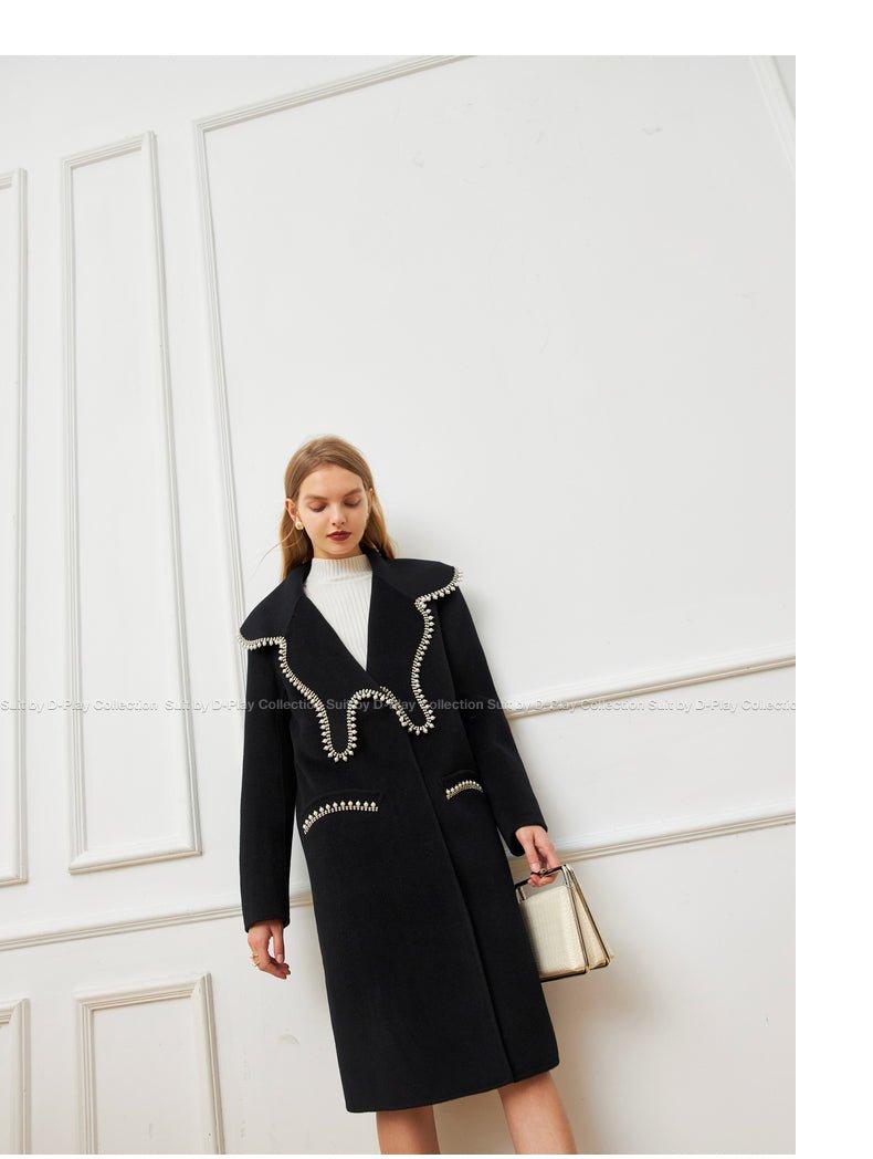 DPLAY Fall Winter Black Pearl Collar 100% Wool Reversible Jacket coat - Usi